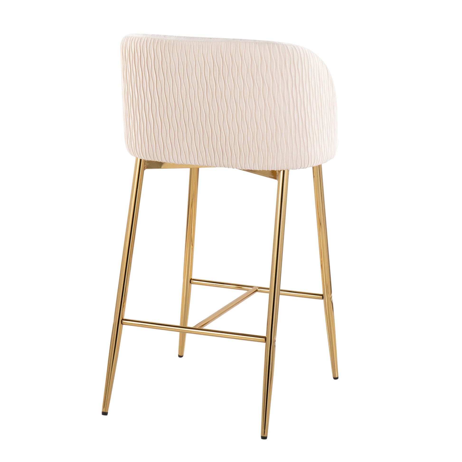 Fran - Pleated Waves Contemporary / Glam Fixed Height Counter Stool (Set of 2) - Gold / White
