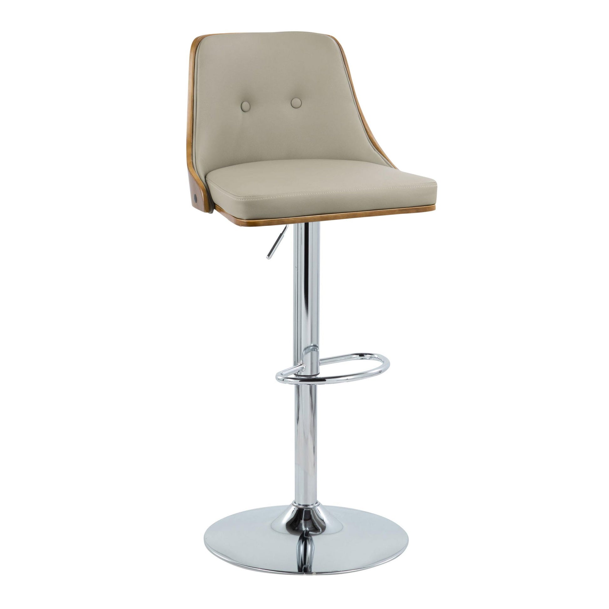 Gianna - Mid-Century Modern Adjustable Barstool With Swivel With Oval Footrest (Set of 2) - Chrome / Walnut / Cream