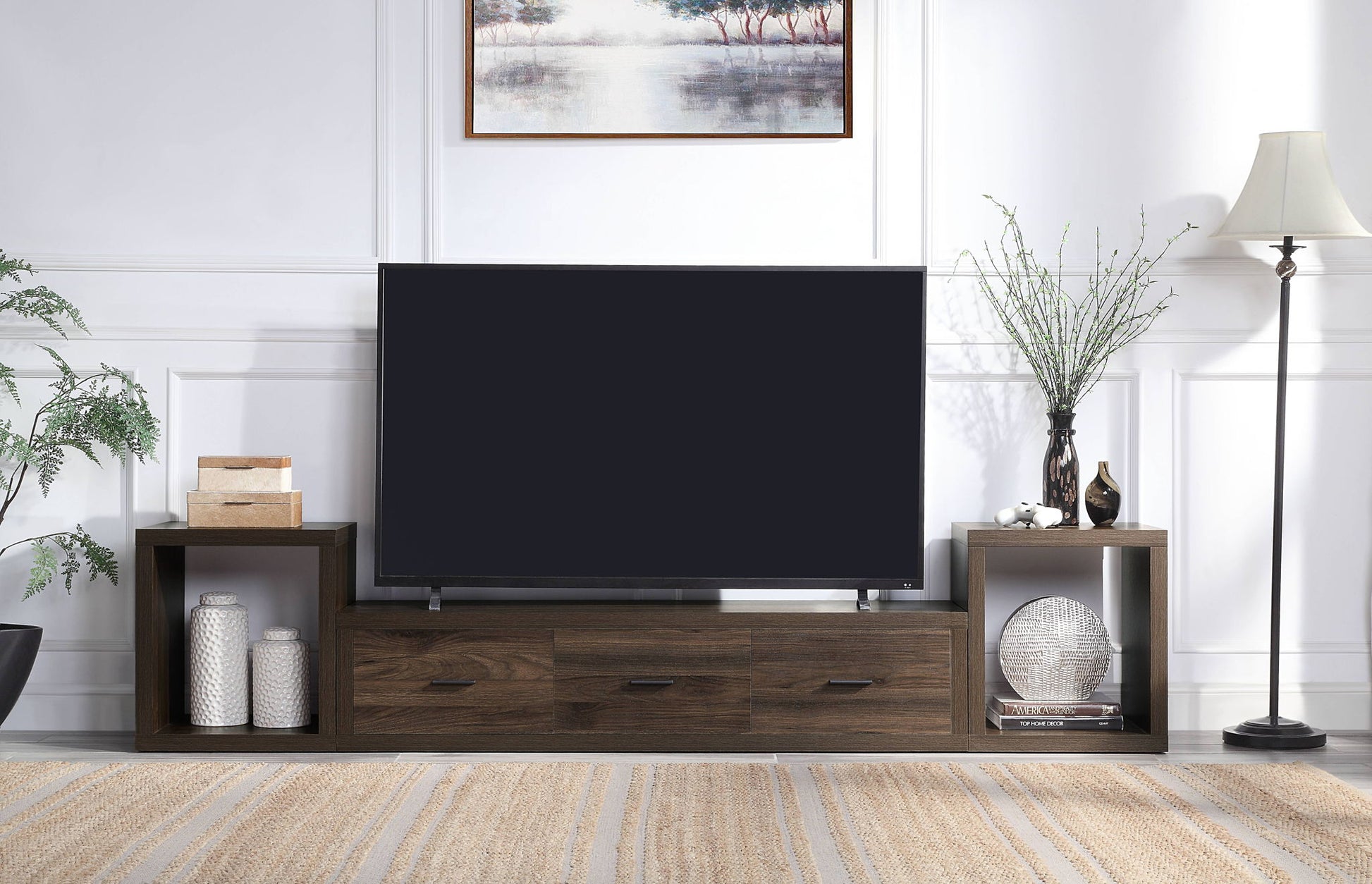 - Ample Storage: Equipped with three spacious storage drawers on metal center glides with 3/4 extension and built-in safety stops, it offers convenient and secure organization for your entertainment essentials.