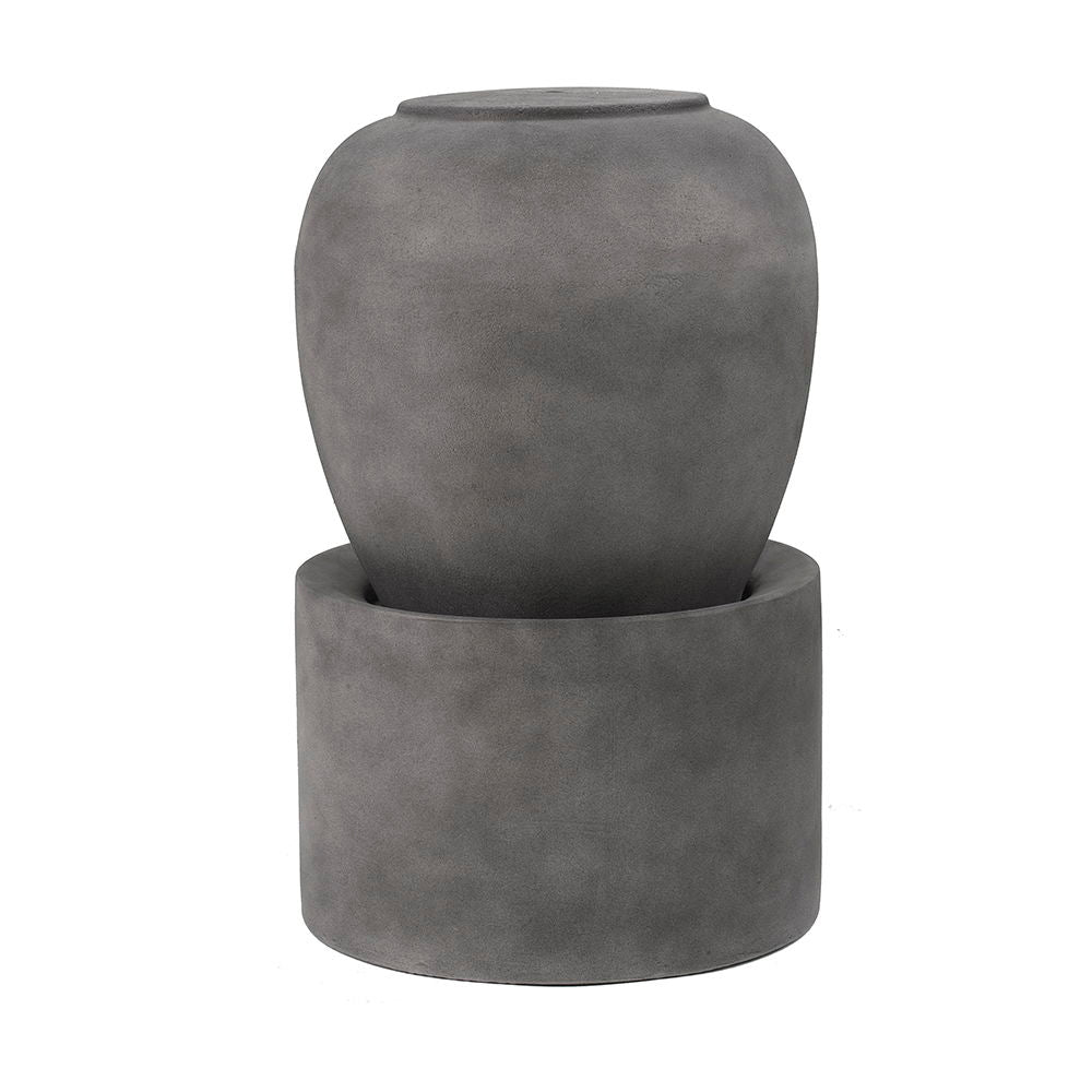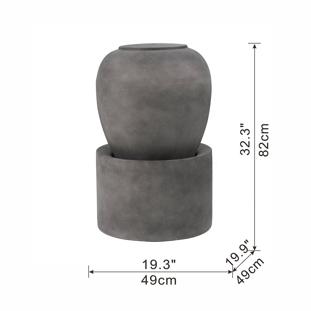 Heavy Outdoor Cement Fountain Antique, Cute Unique Urn Design Water Feature For Home Garden, Lawn Deck & Patio - Antique Gray