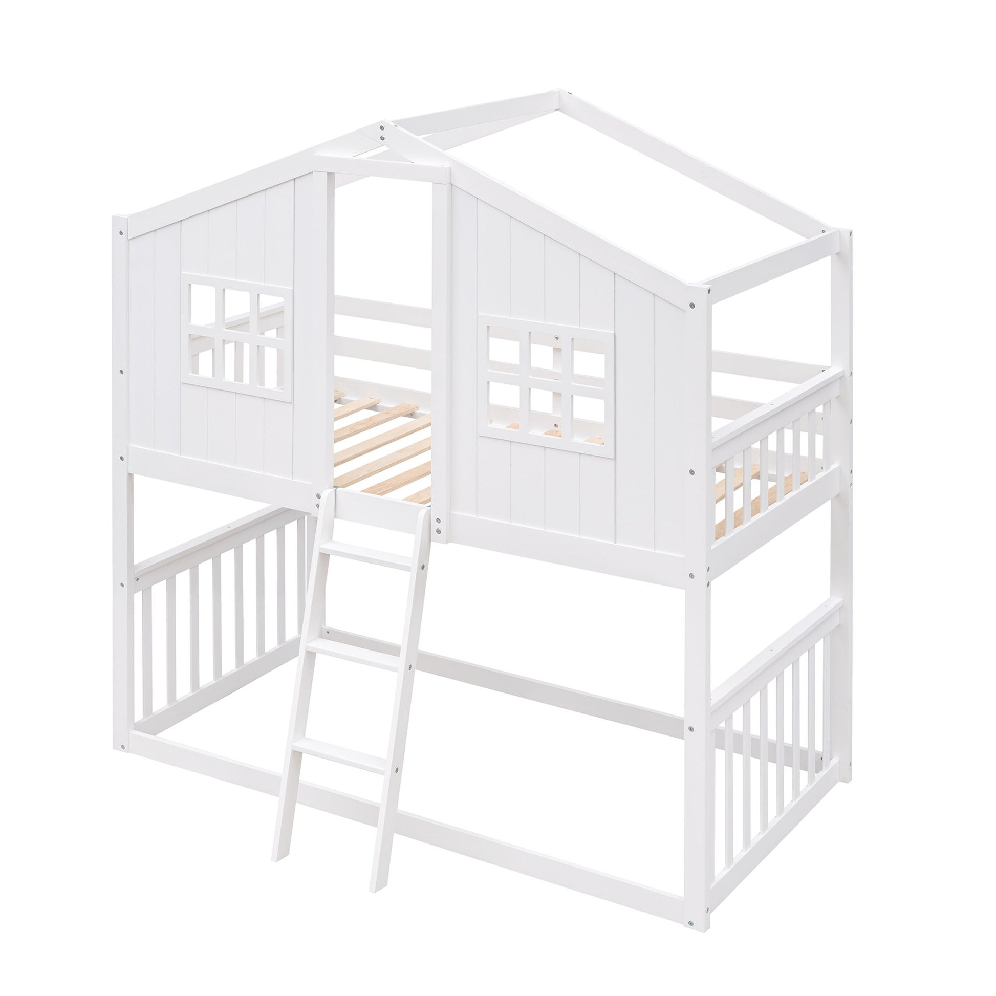 Twin Over Twin House Bunk Bed With Ladder - Gray