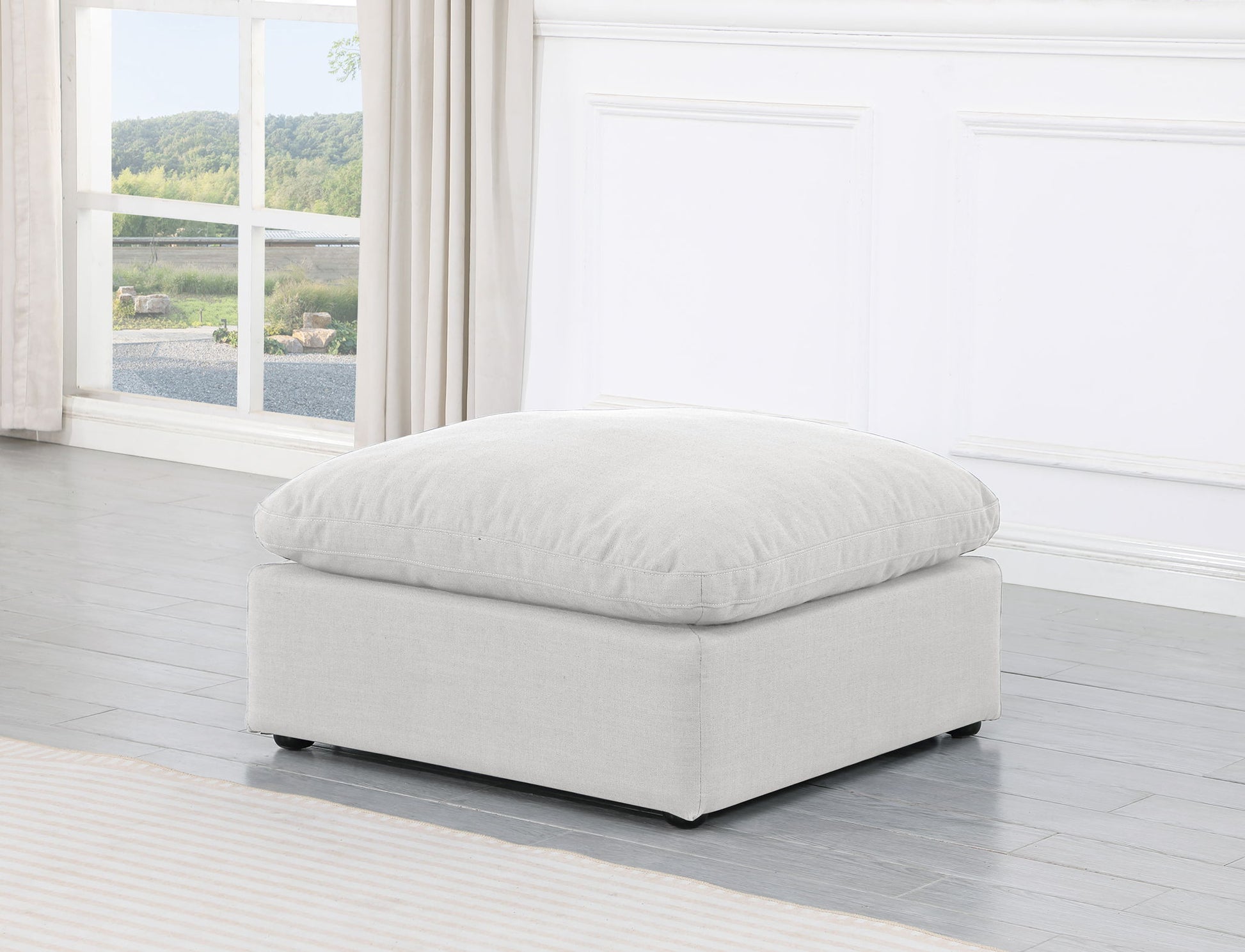 Indulge - Linen Ottoman - White