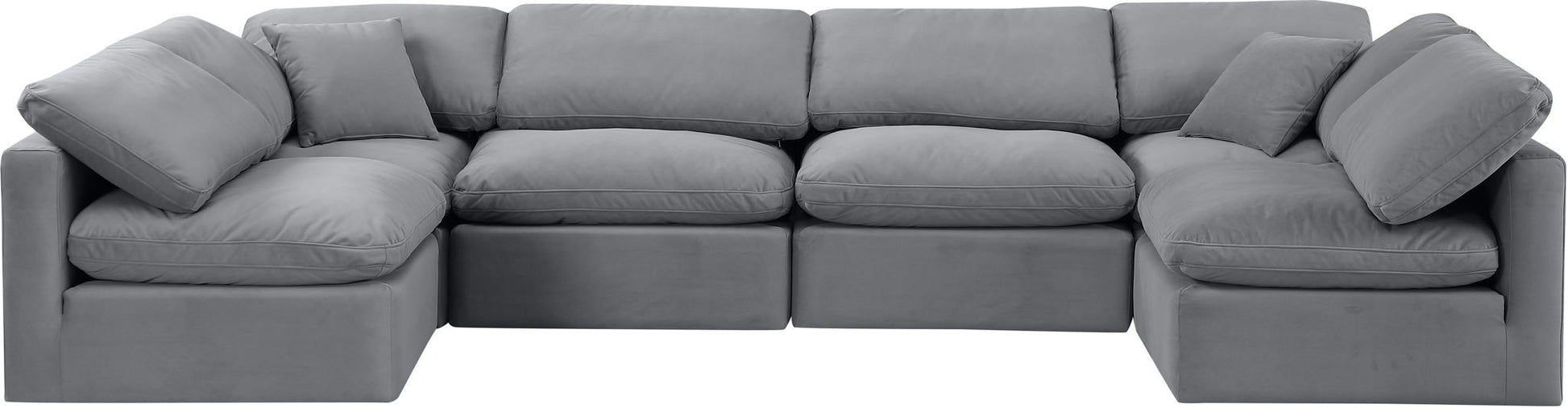 Indulge - Velvet 6 Piece Modular U-Shaped Sectional - Gray