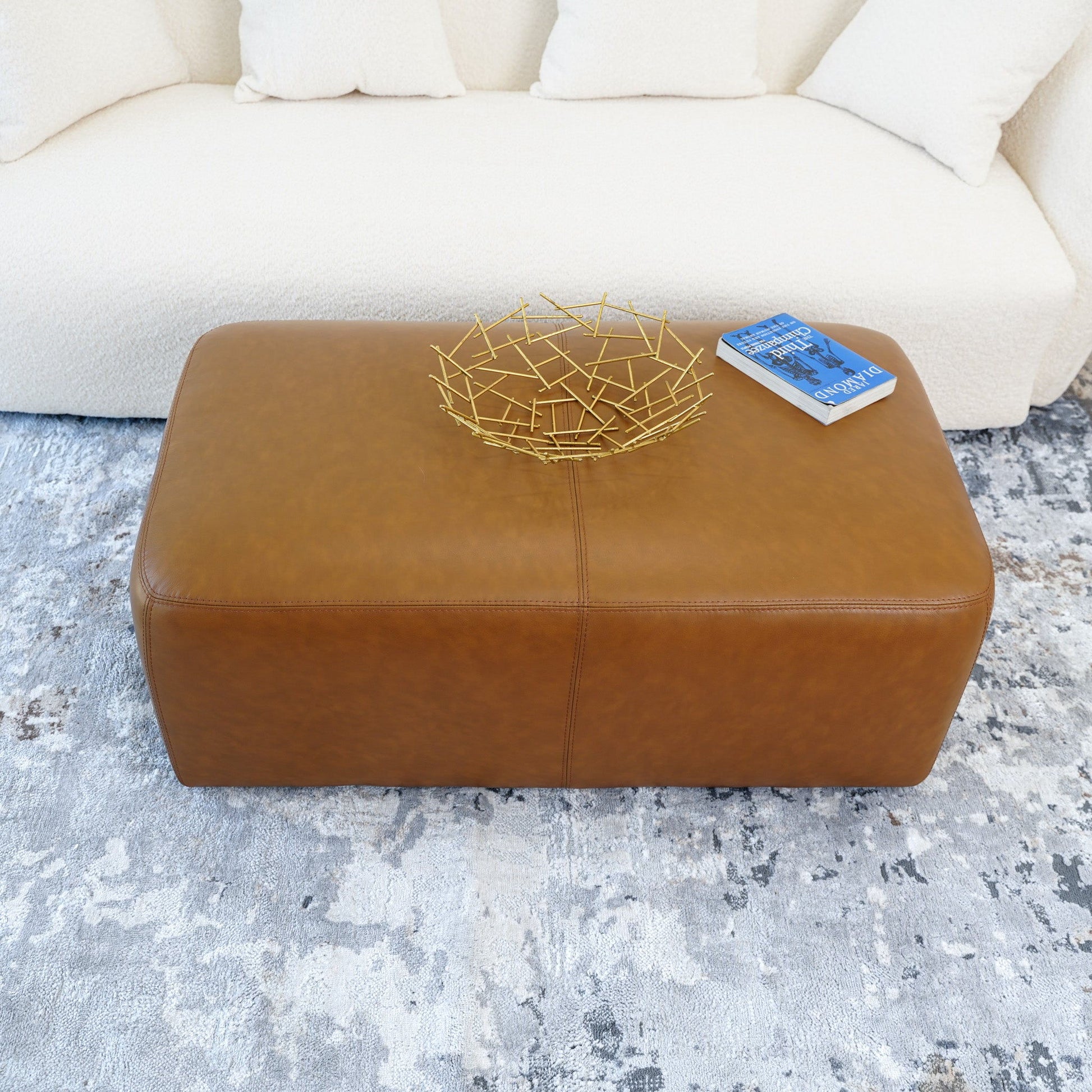 - Versatile Design: The Ingram Tan Leather Ottoman is a perfect centerpiece for any room, transforming the look of living rooms, bedrooms, and more with its stylish presence.