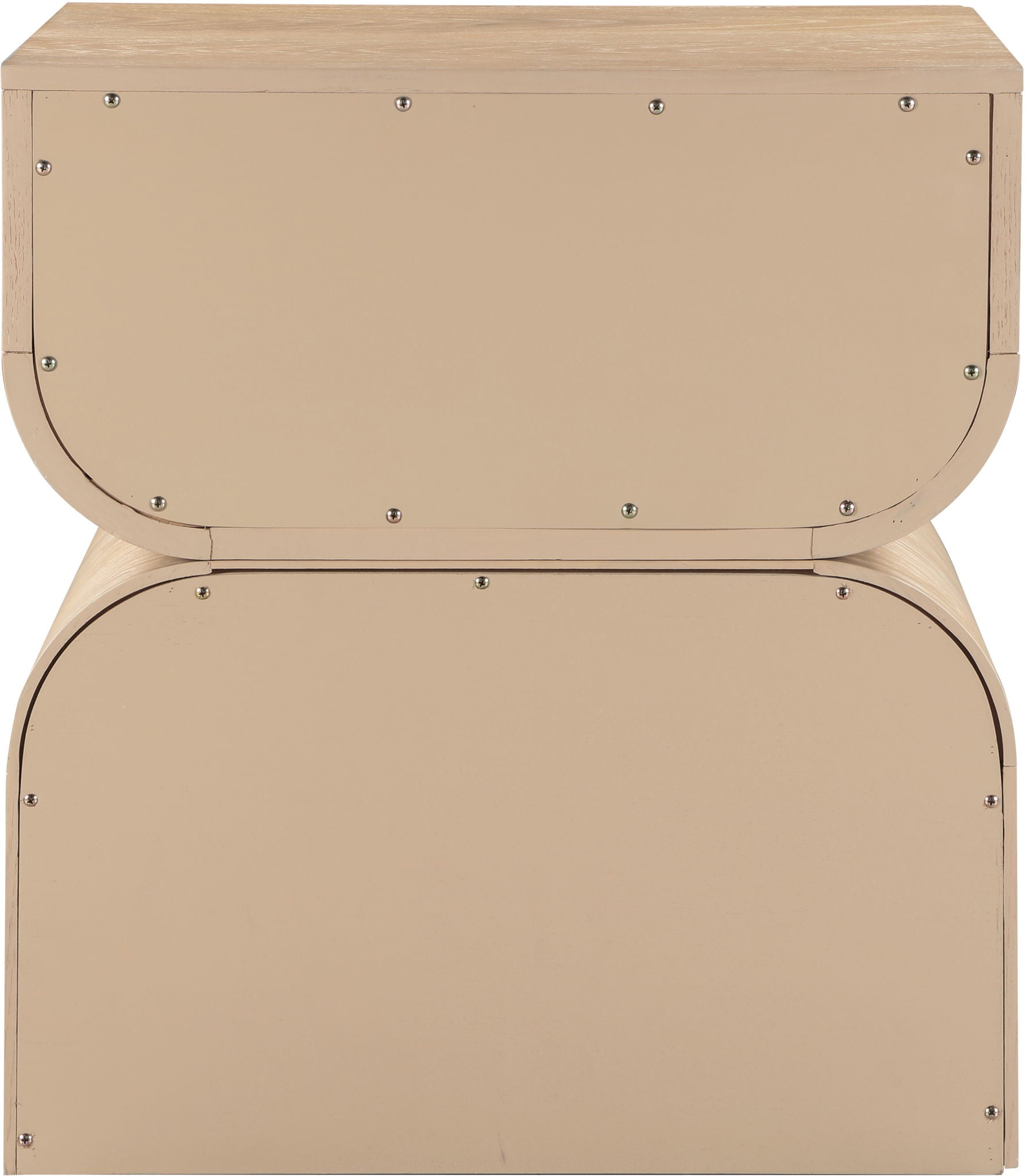 In the realm of modern design, the Jace oak veneer nightstand strikes as a captivating masterpiece. Its sleek lines and curved silhouette create a captivating interplay of light and shadow. The spacious drawer provides ample storage for your essentials, such as adding a basket to put underneath for books and other small items. The unique design adds a touch of personality to your bedroom.