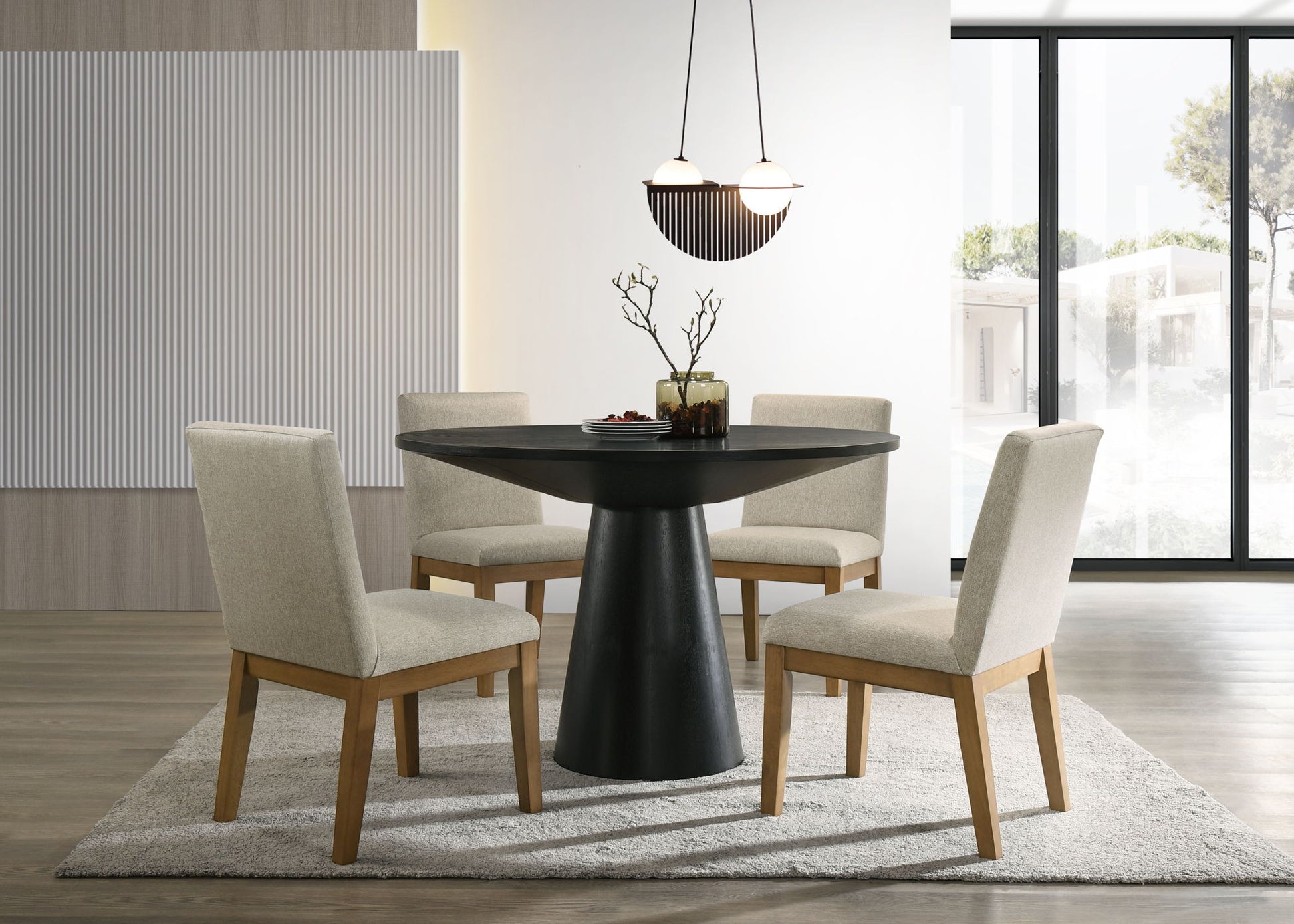 Jasper - 5 Piece Wide Contemporary Round Dining Table Set With Chairs - Black