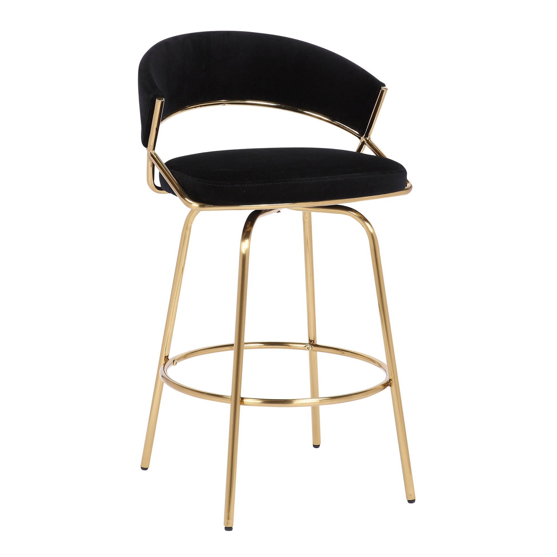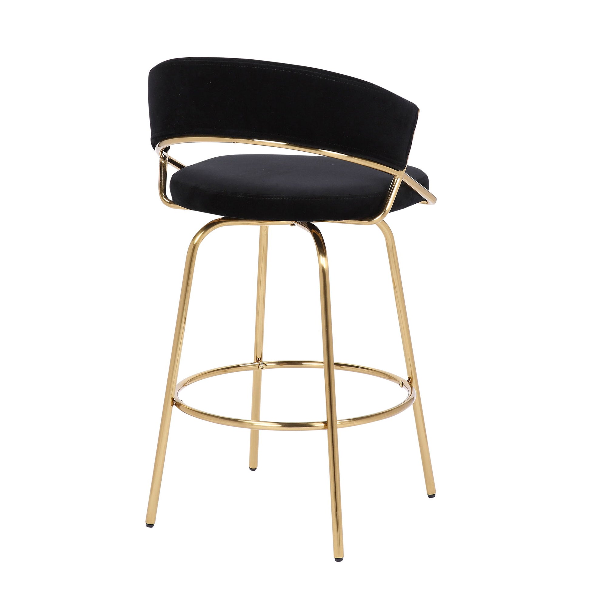 Jie - Fixed Height Contemporary Counter Stool With Swivel With Round Footrest (Set of 2) - Gold / Black