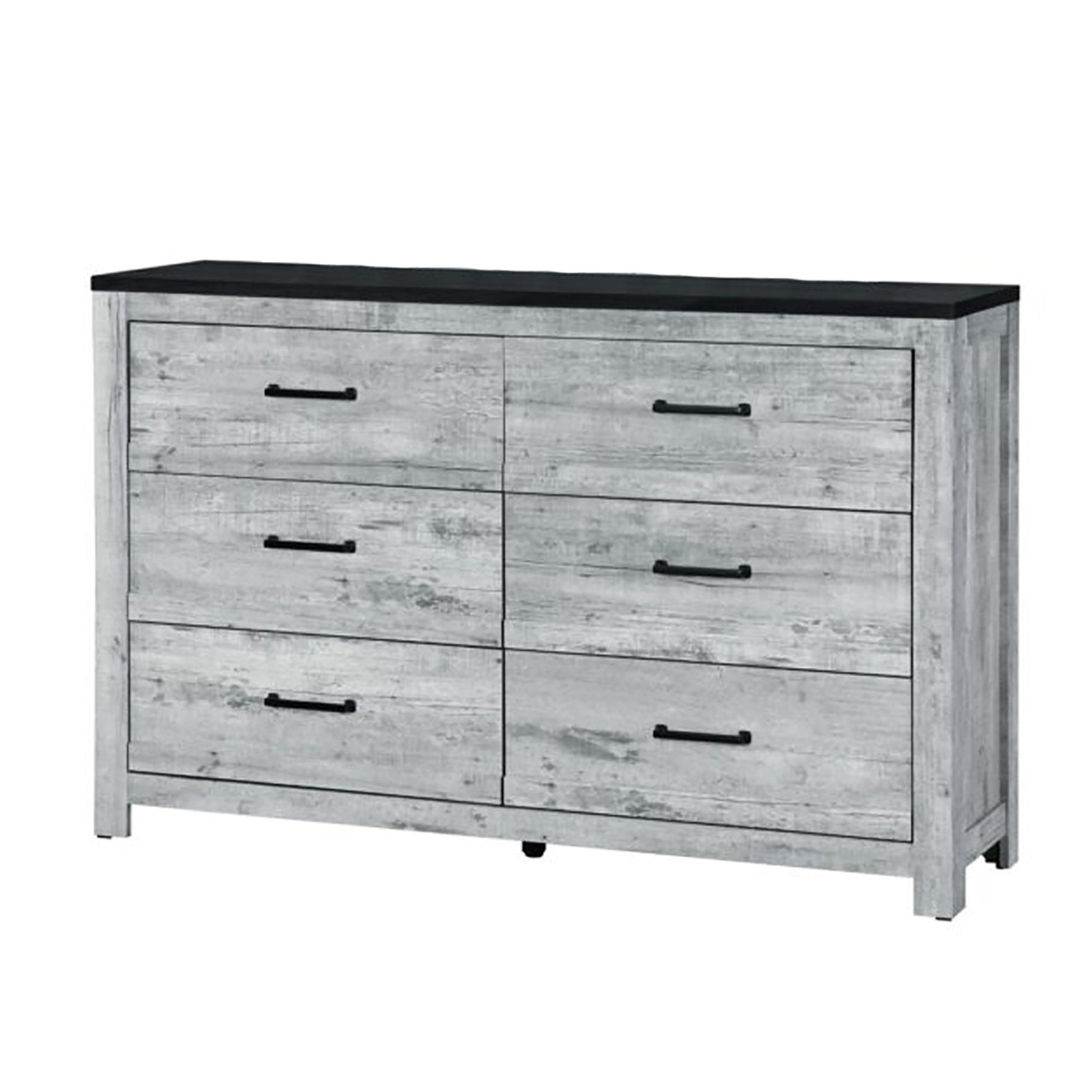 - Design: Contrasting black top offers a modern twist to the classic dresser.