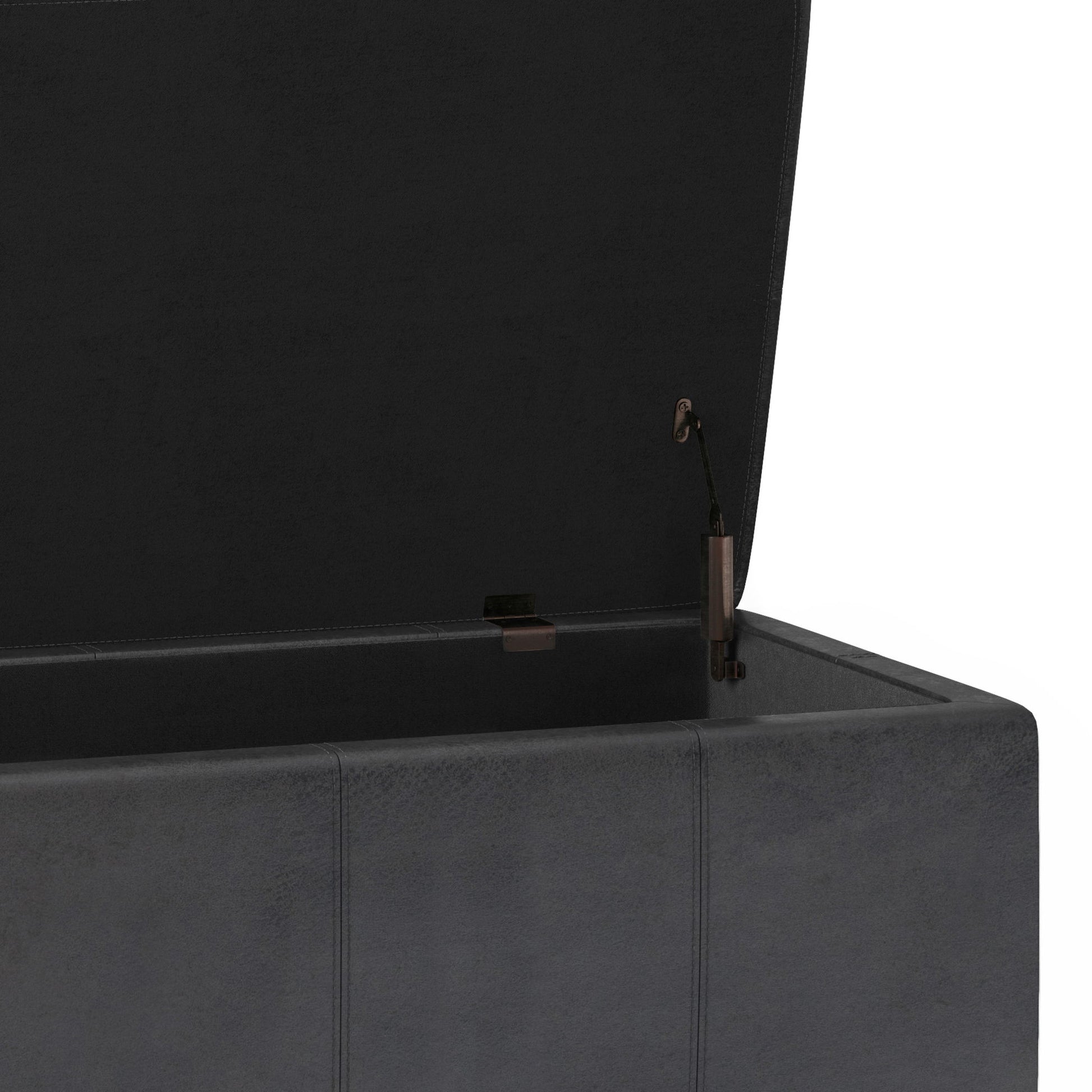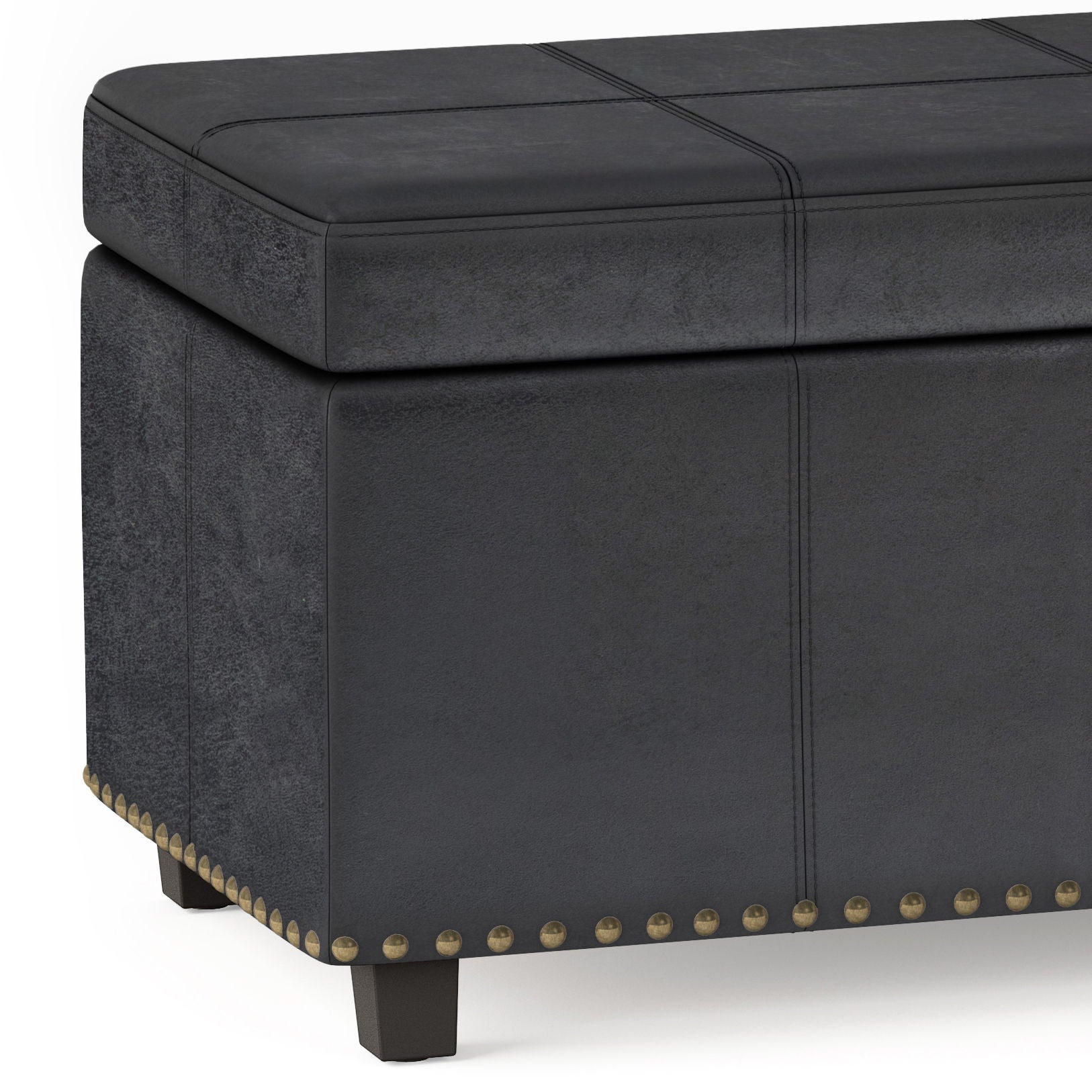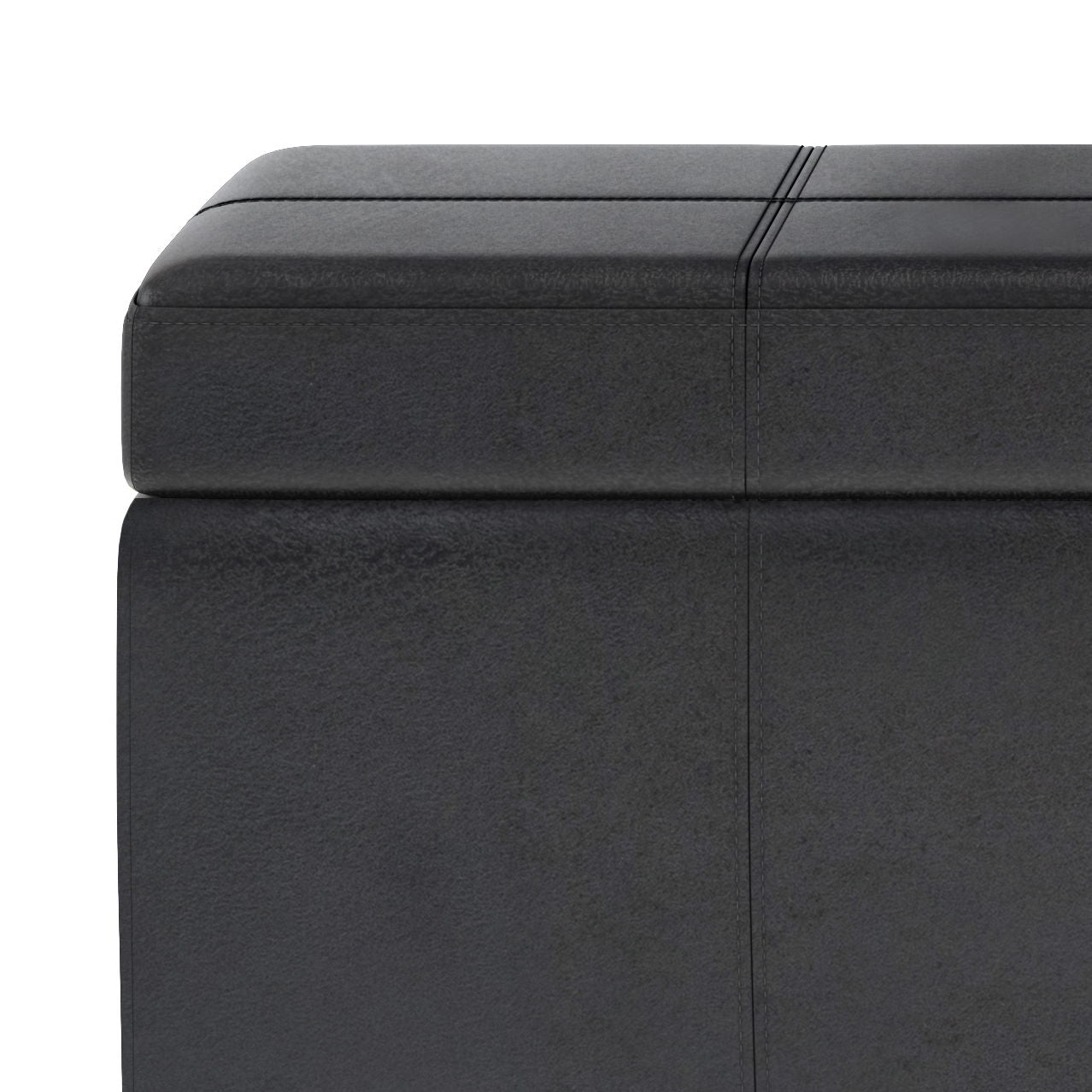 - Upholstered with a durable Distressed Black Vegan Faux Leather