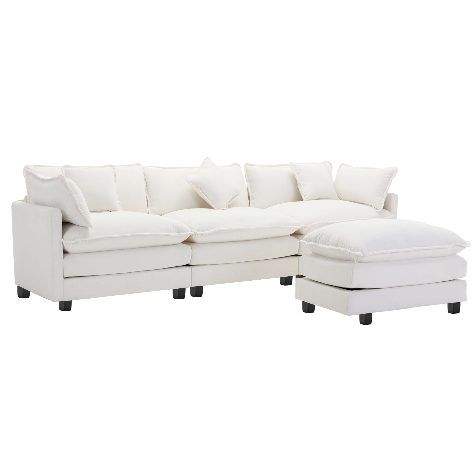 L-Shape Chenille Upholstered Sofa For Living Room Modern Luxury Sofa Couch With Ottoman, 5 Pillows - Beige