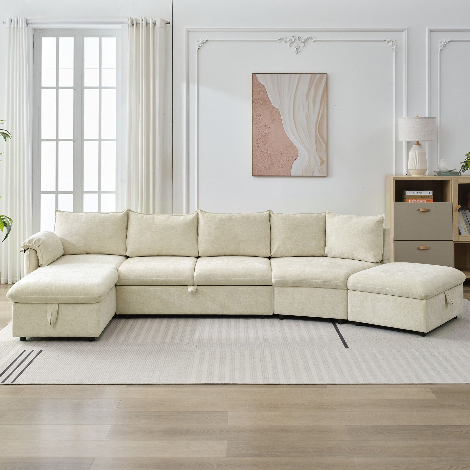 L-Shaped Sofa Sectional Sofa Couch Pull-Out Sofa Bed With A Movable Storage Ottoman, A Storage Chaise Lounge And Two USB Ports For Living Room - Beige
