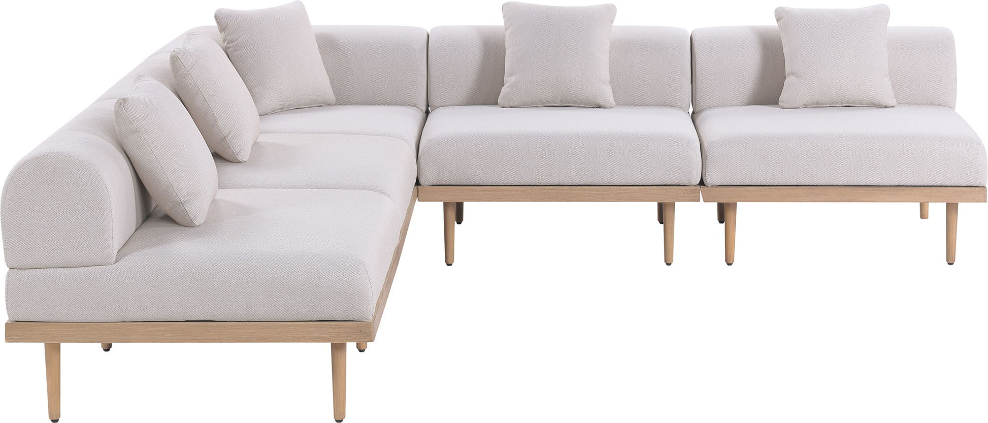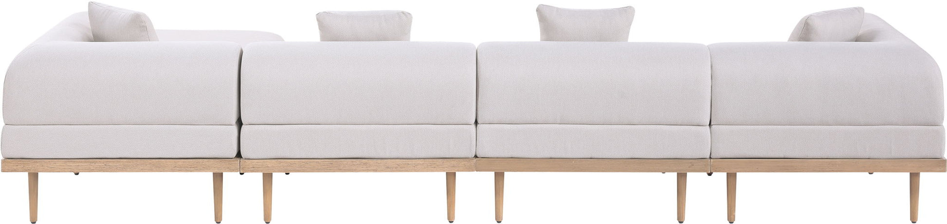 Laguna - 5 Piece Resilient Water Resistant Fabric 142" Upholstered Outdoor Patio Modular Sectional - Cream