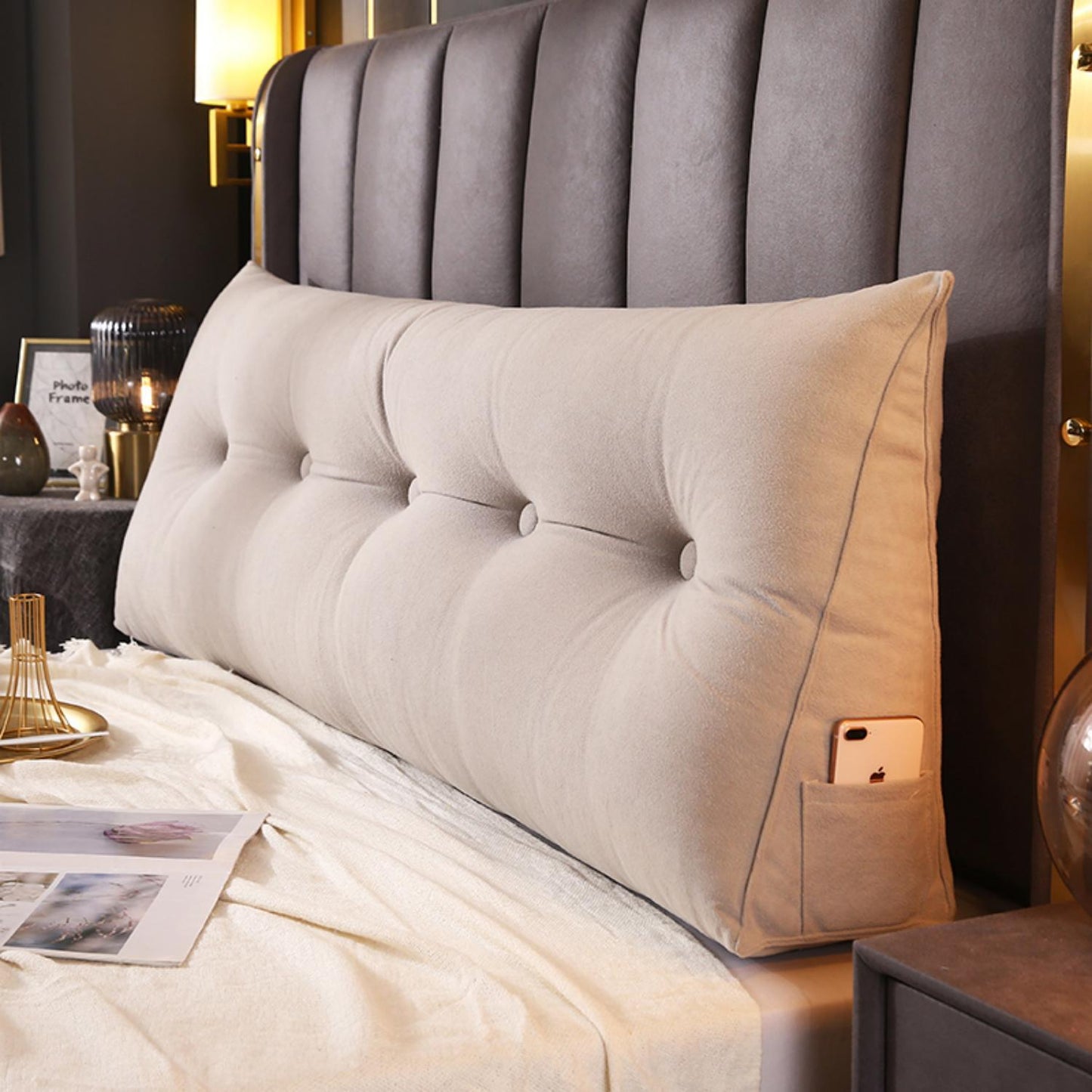 Large Triangular Wedge Headboard Pillow, Bolster Bed Rest Back Support Cushion For Reading With Removable Cover - Gray