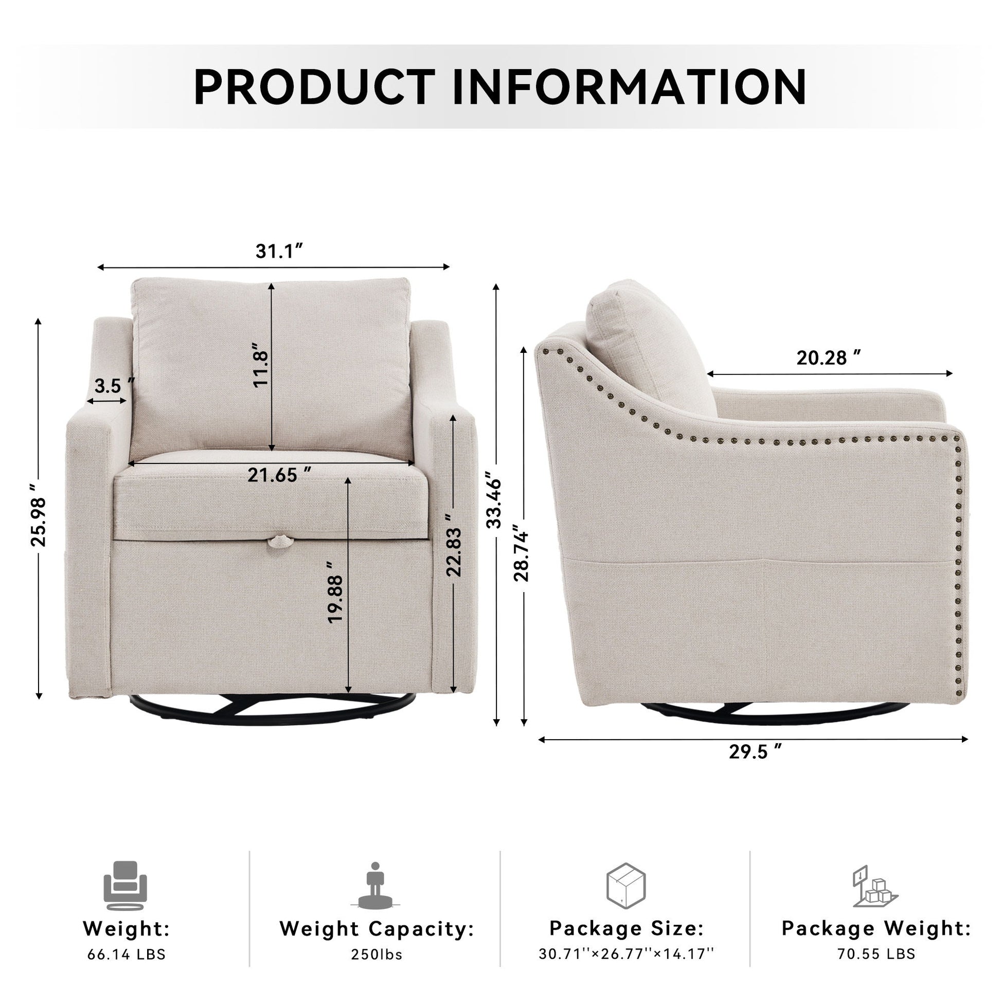 - Elegant Design: Upholstered with soft linen and detailed with rivet armrests for a chic look.