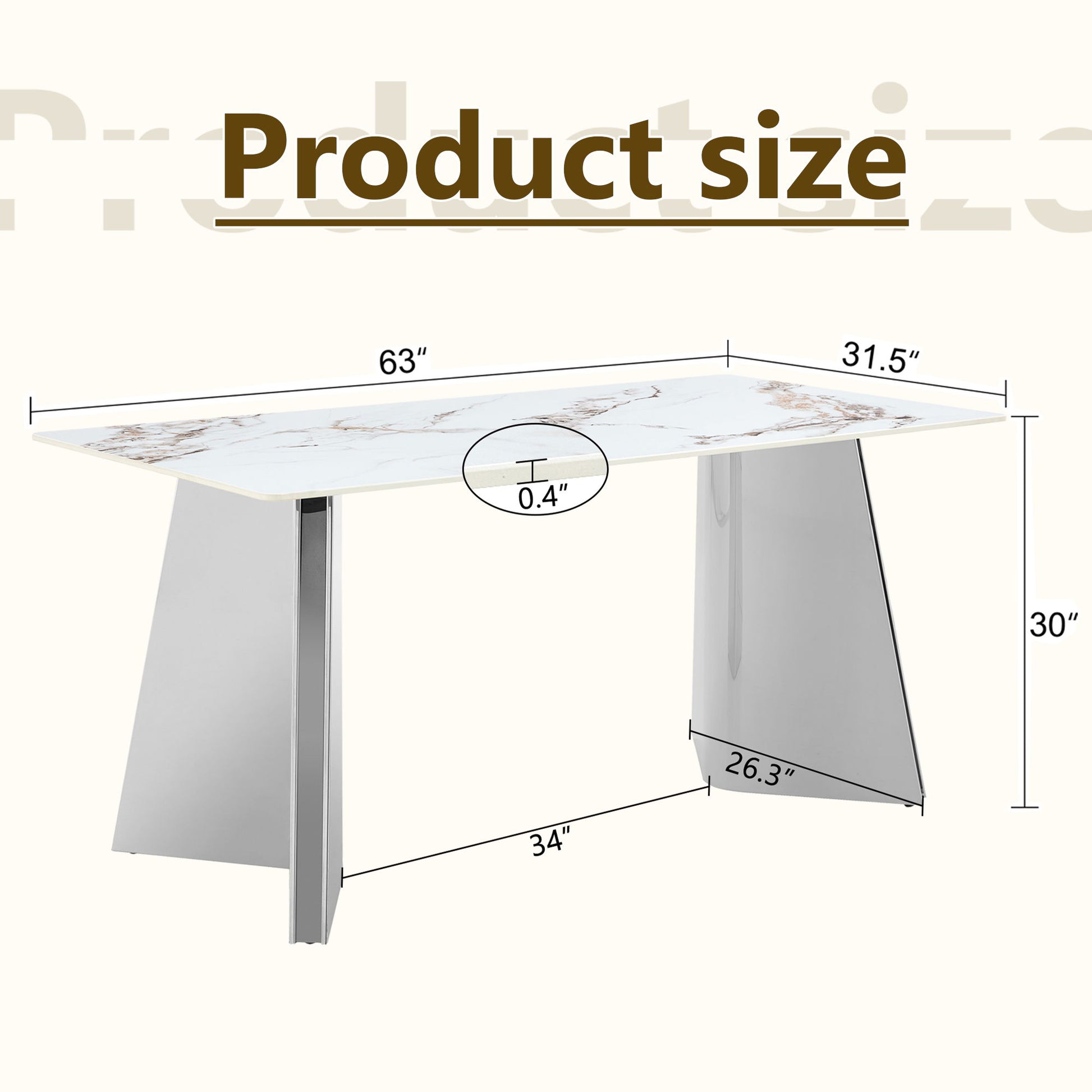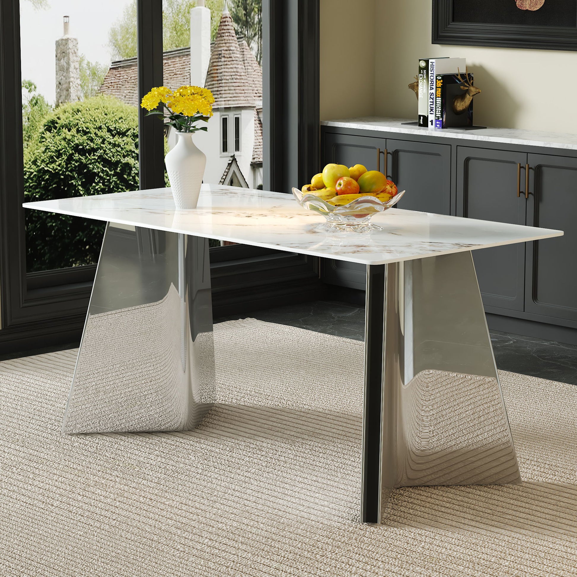 Luxurious Cold Jade Sintered Stone Dining Table With Stainless Steel Butterfly Legs, Scratch & Heat Resistant - Silver / White