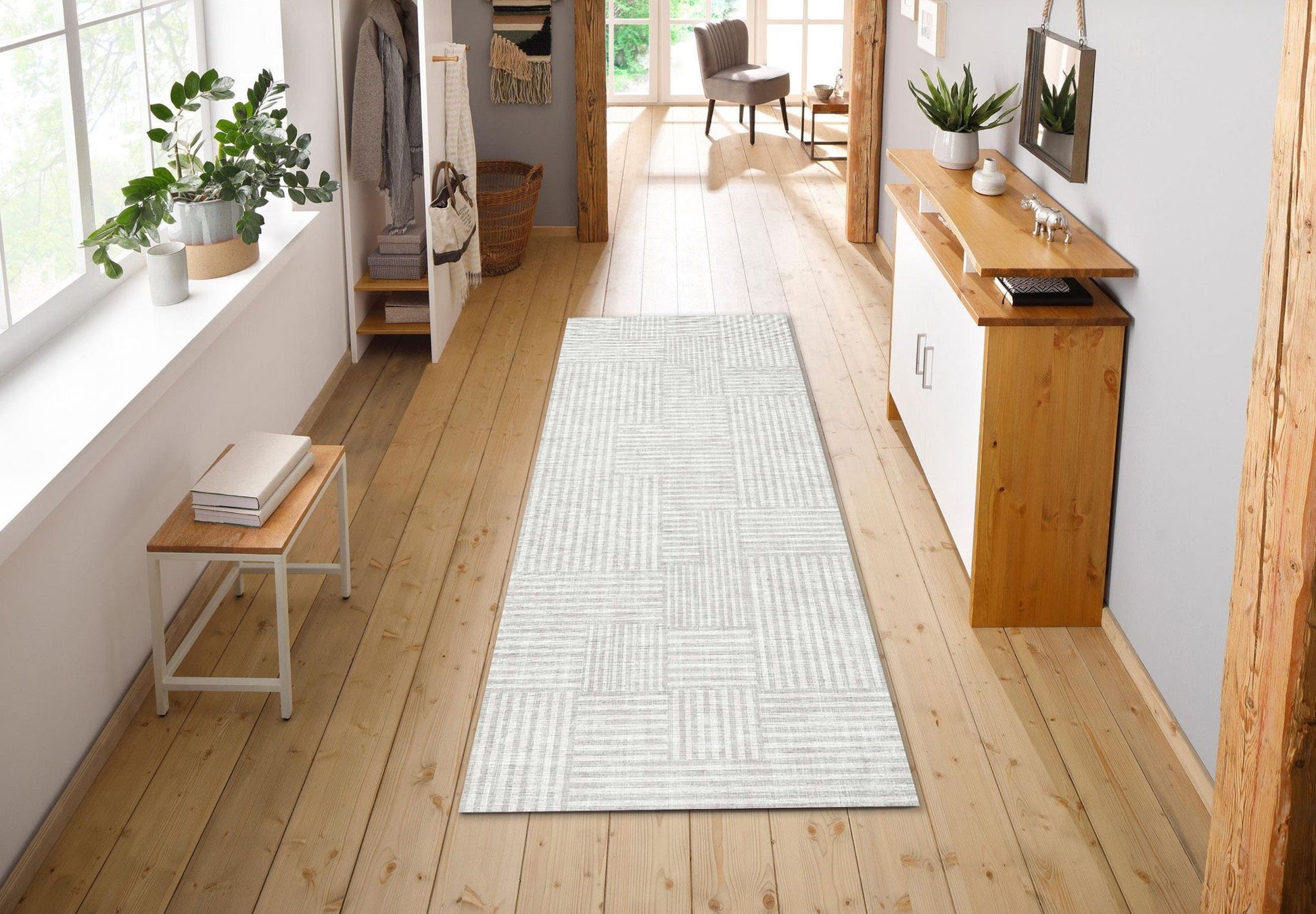 Macau - Non - Slip Runner Rug - White / Gray