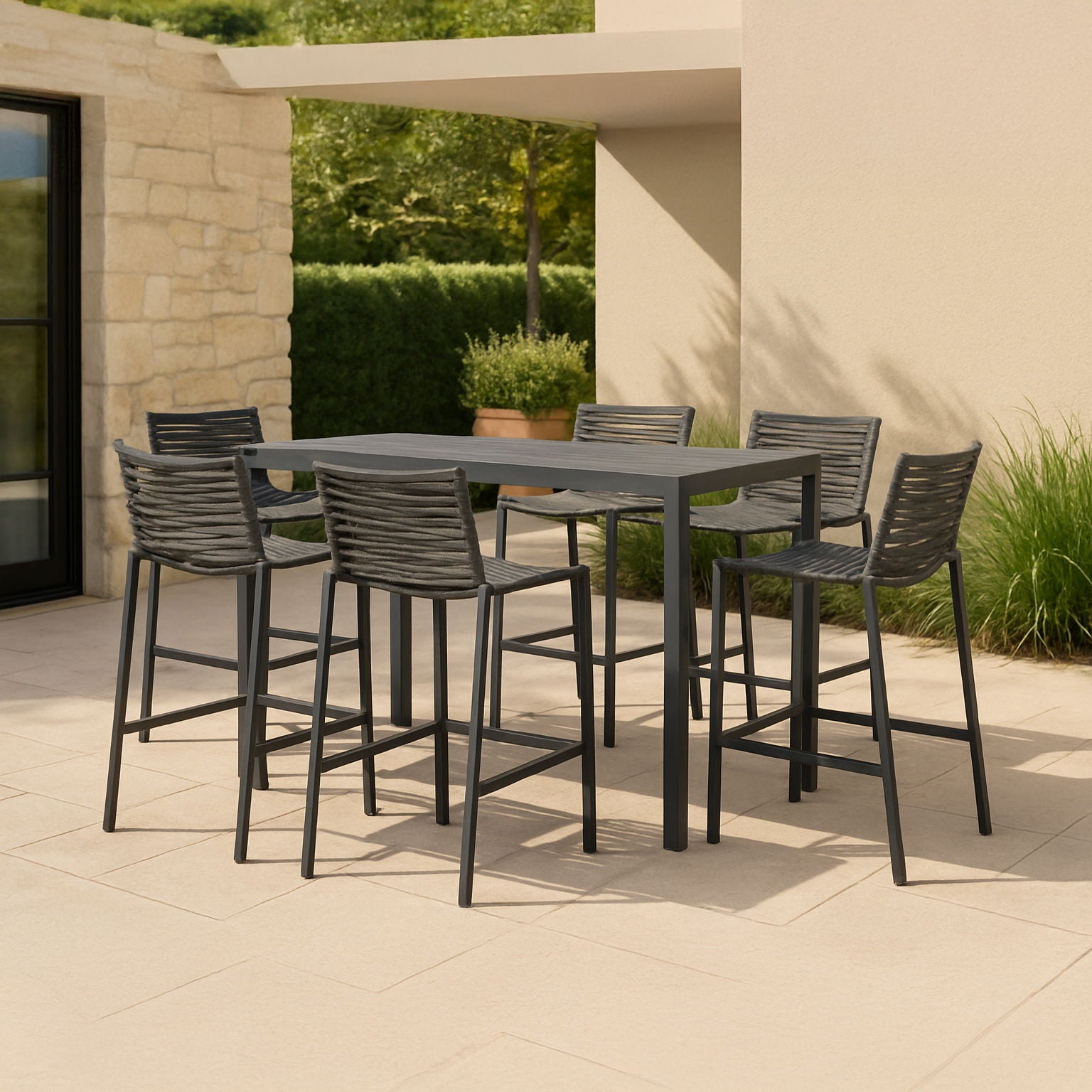 Bring the comfort of the indoors to your outdoor space with this Maldives outdoor patio rectangle bar table. This beautiful table features a aluminum frame with quality construction, so you can count on it weathering the outdoors without skipping a beat. Pair it with the outdoor stools to rest and relax under the sun with a definitive resort appeal.