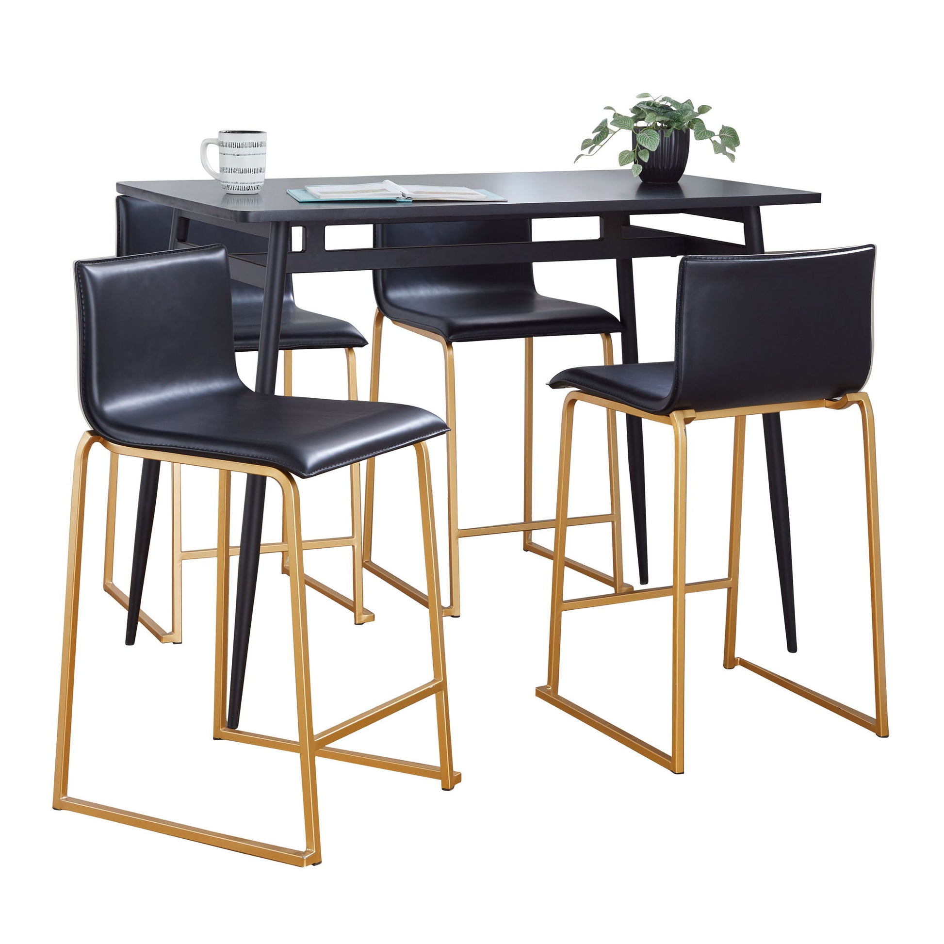 Marcel Mara - 5 Piece Upholstered Contemporary Counter Height Dining Set - Black / Gold / Black