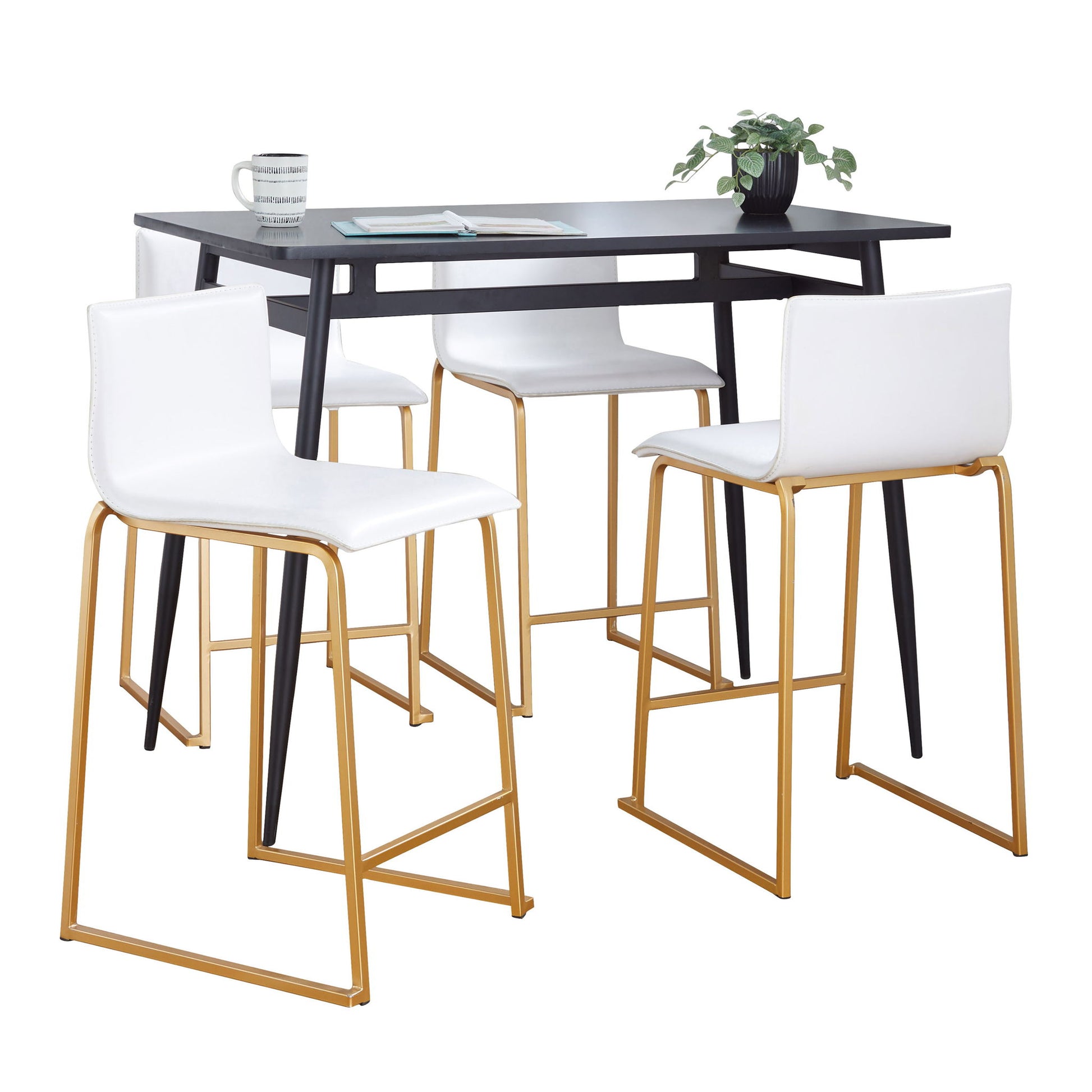 Marcel Mara - 5 Piece Upholstered Contemporary Counter Height Dining Set - Black / Gold / White