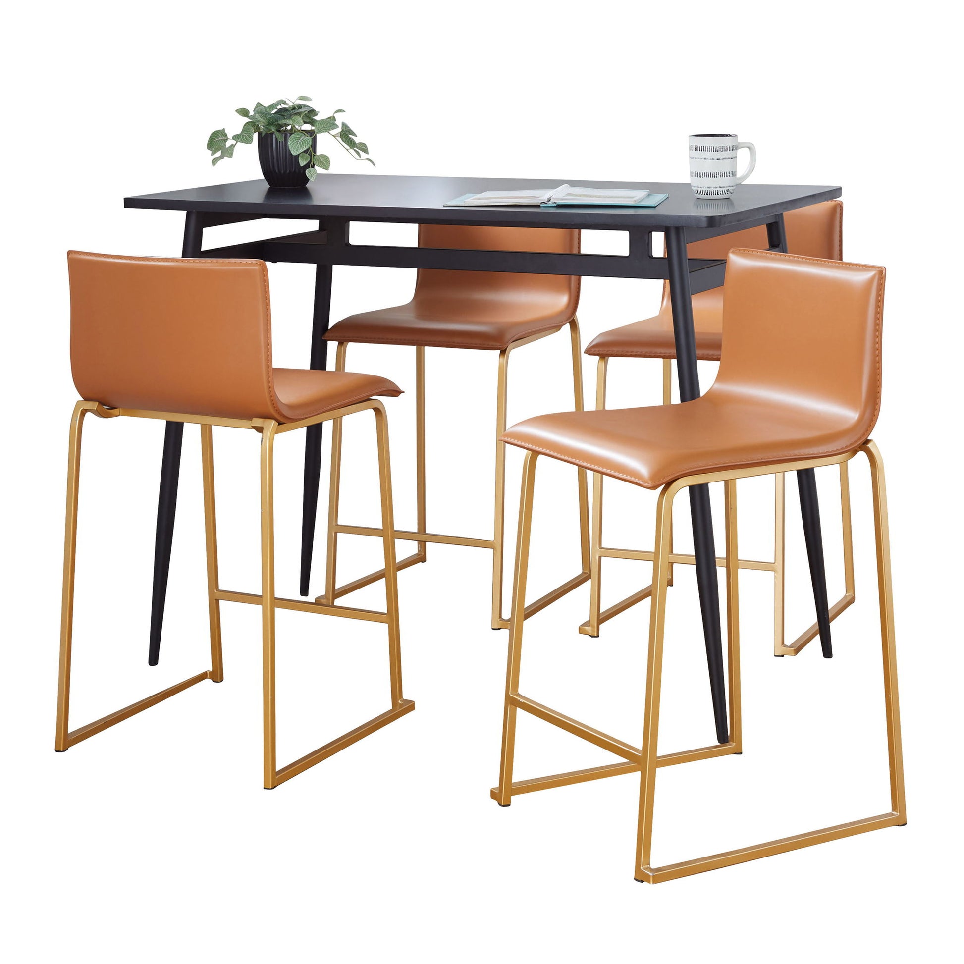 Marcel Mara - 5 Piece Upholstered Contemporary Counter Height Dining Set - Black / Gold / Camel