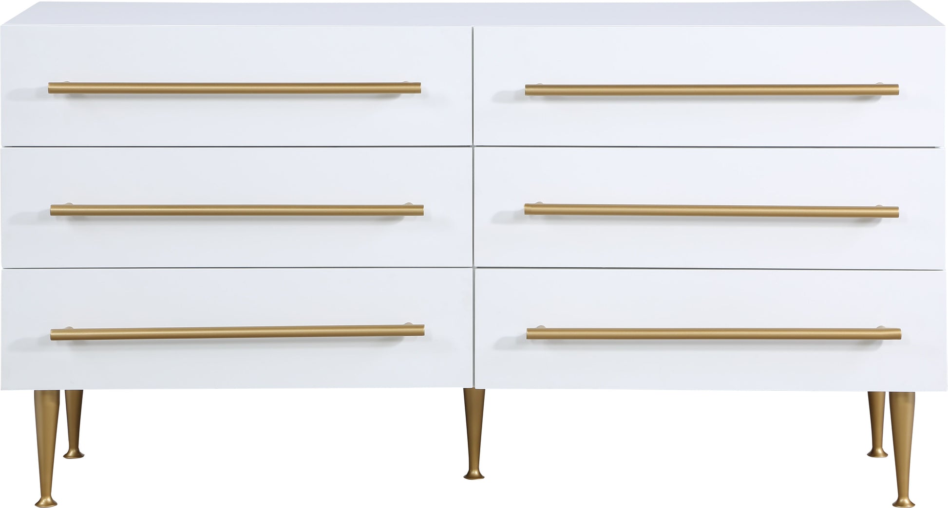 Turn to the Marisol dresser to make a big impression in your modern bedroom. This contemporary piece looks great on its own or paired with other items in the Marisol collection. Eye-catchingly elegant, this piece features a rich finish with brushed metal legs and handle for an up-to-the-minute vibe in your bedroom sanctuary. Minimalist hardware adds functionality without overpowering the unit. Wood construction adds to its durable design.