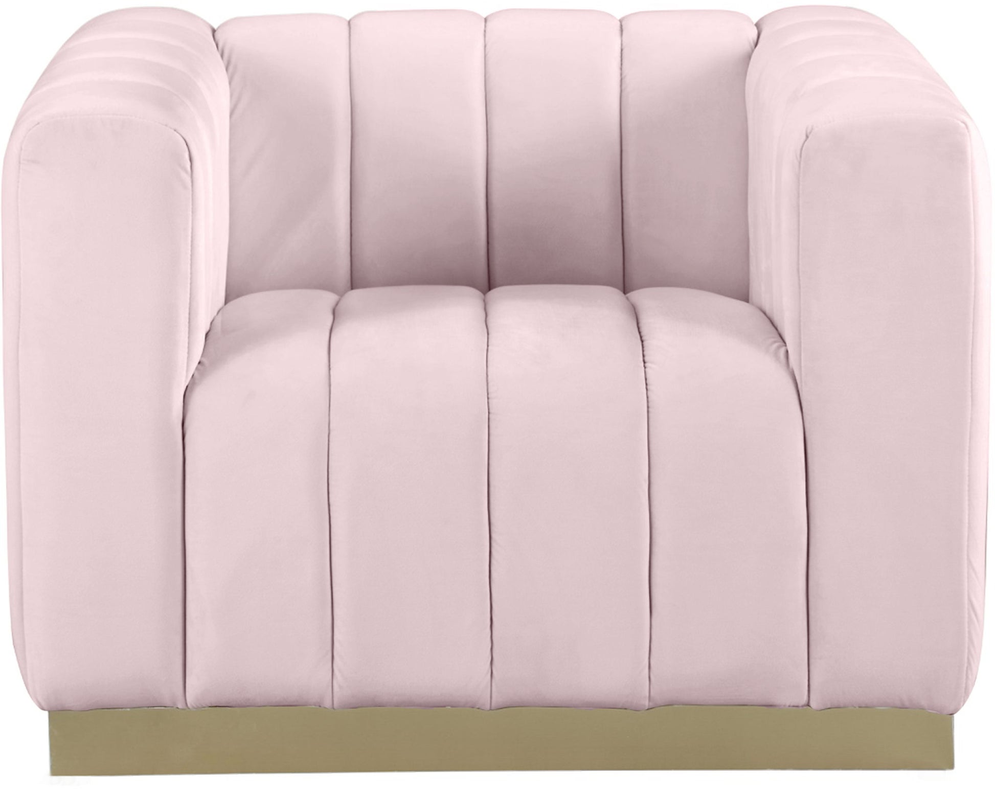 Seat guests in the epitome of comfort and style with this Marlon velvet chair. This piece is just the thing to showcase your modish style while ensuring total enjoyment from all who are lucky enough to relax on its channel tufted seats. The soft velvet upholstery adds a beautiful touch to your space and feels great against your skin while the brushed stainless steel base lends it a contemporary finish.