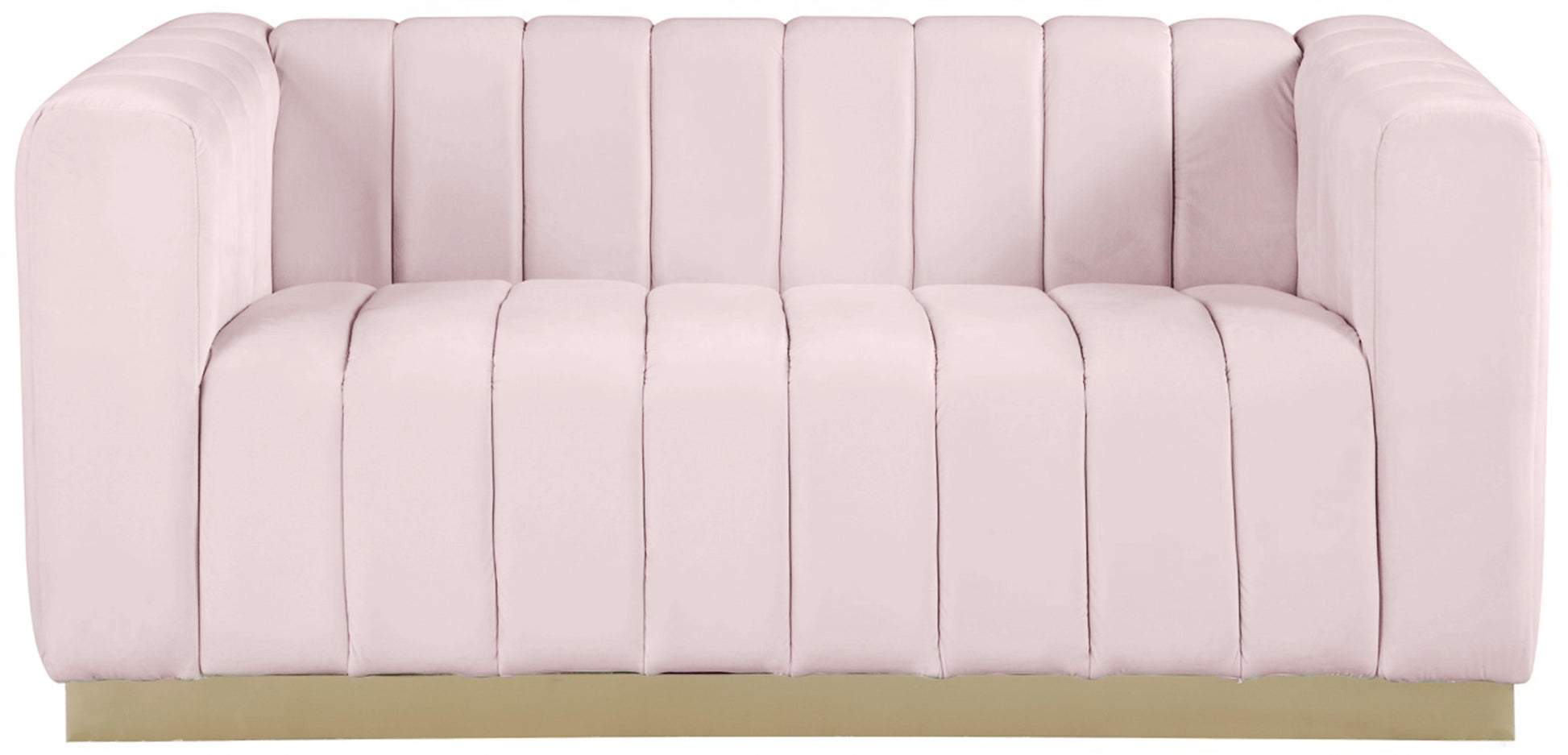 Seat guests in the epitome of comfort and style with this Marlon velvet loveseat. This piece is just the thing to showcase your modish style while ensuring total enjoyment from all who are lucky enough to relax on its channel tufted seats. The soft velvet upholstery adds a beautiful touch to your space and feels great against your skin while the brushed gold stainless steel base lends it a contemporary finish.