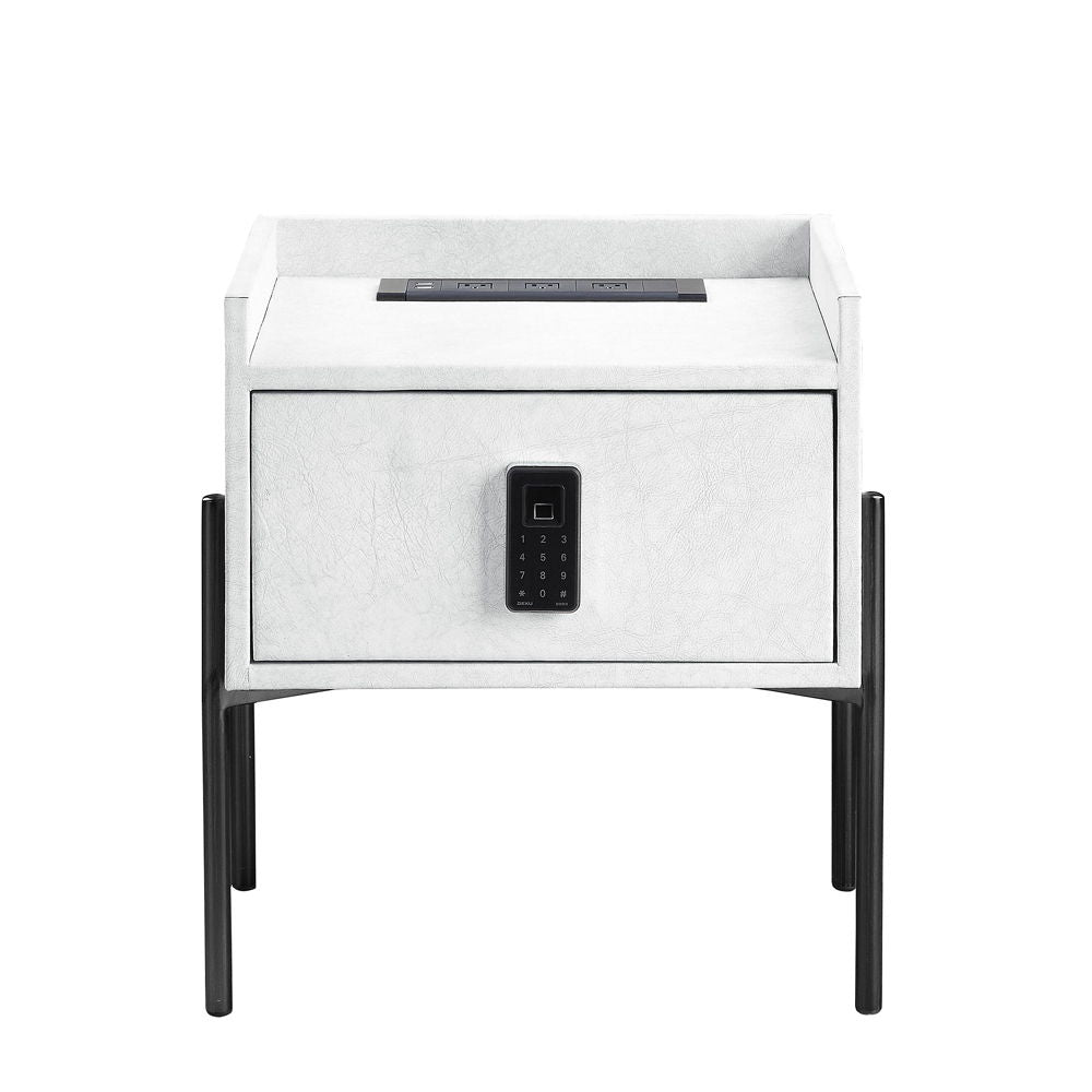 Metis - Nightstand With USB & Electric Lock - Vintage White Top Grain Leather