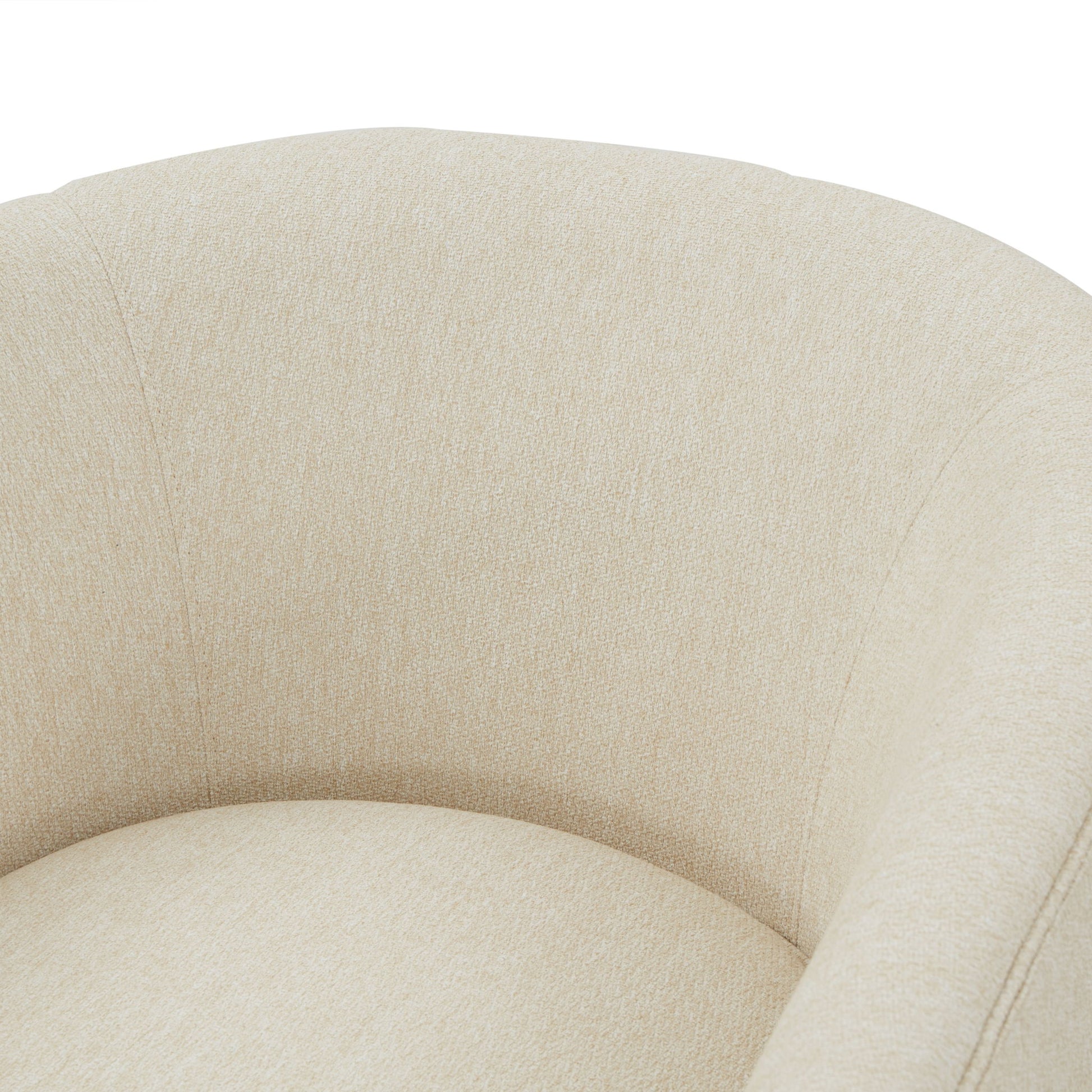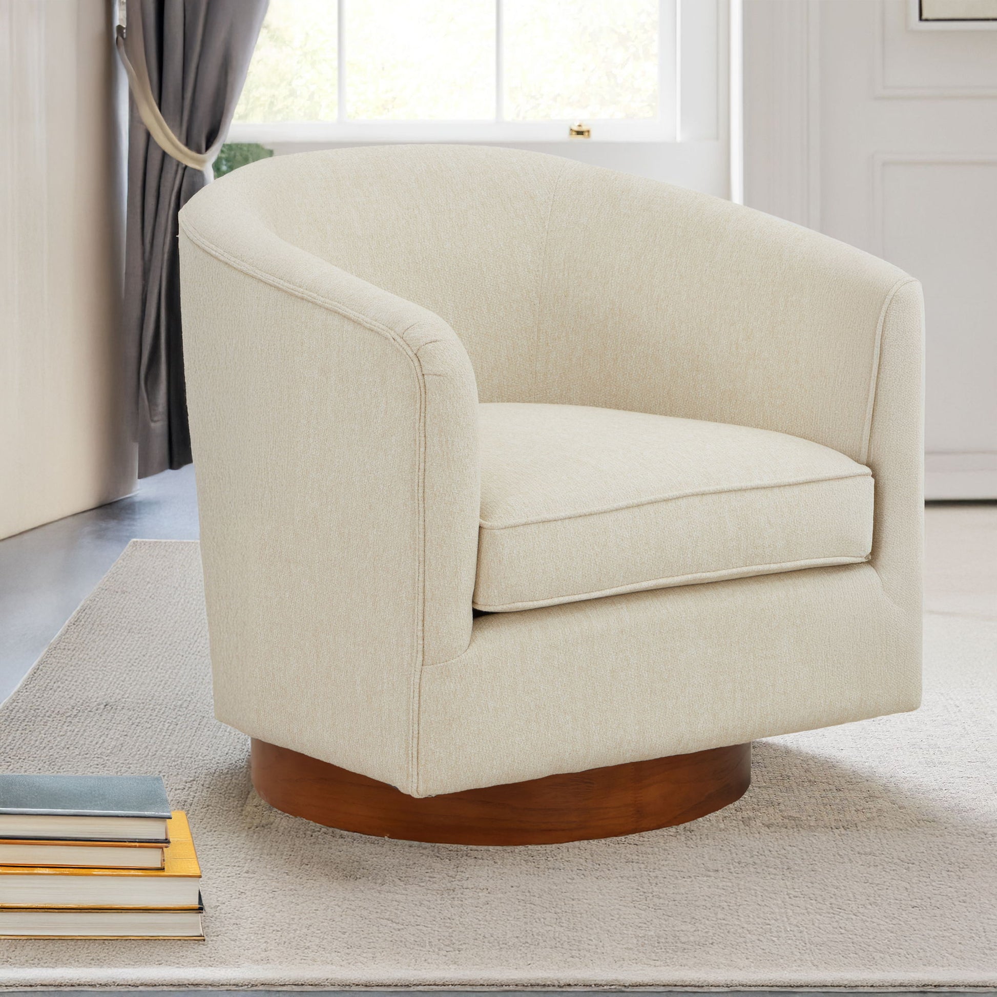 Miramar - Chenille Fabric Swivel Barrel Chair With Wooden Base - Beige