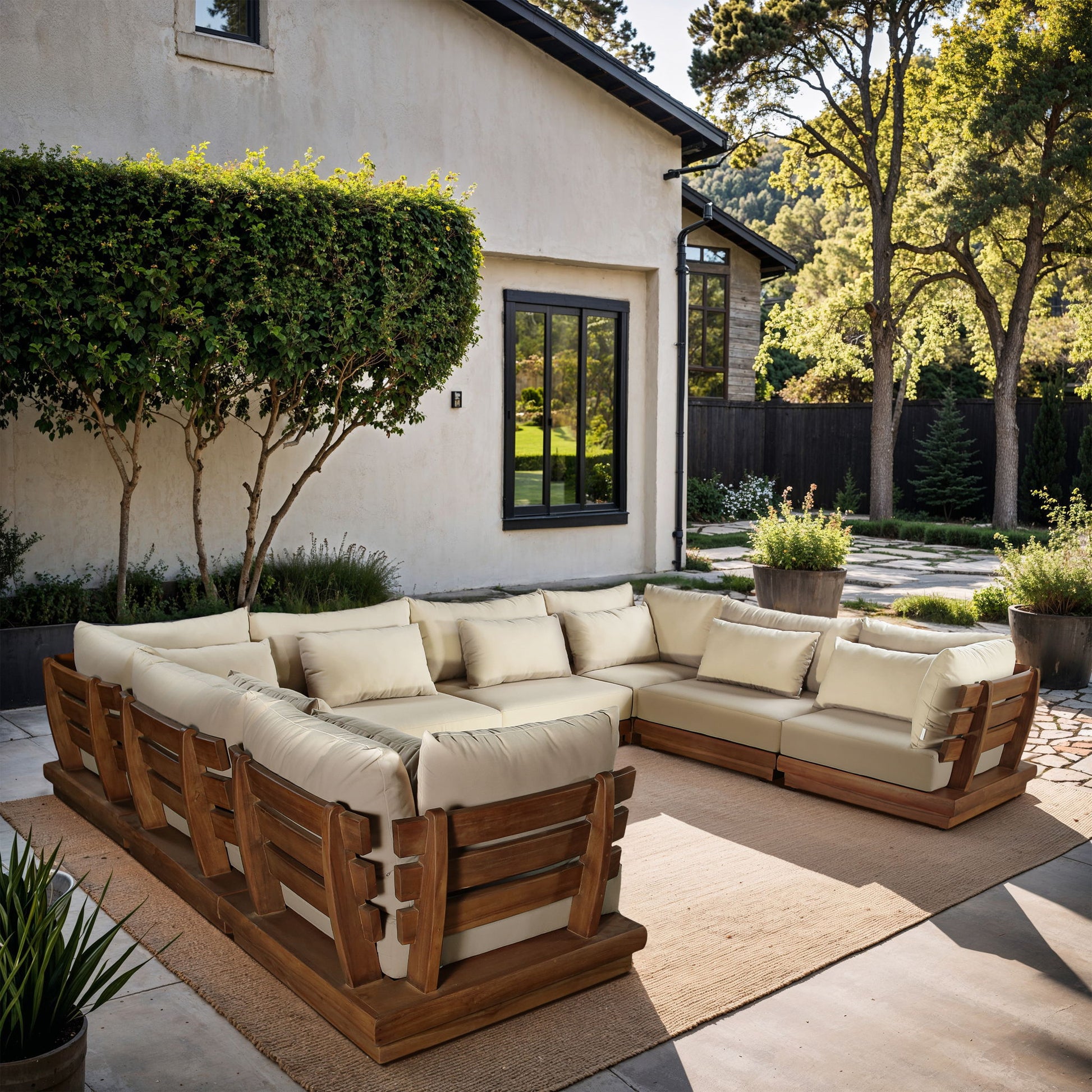 Mirella - 8 Piece Water Resistant Fabric Upholstered Outdoor Patio Modular Sectional