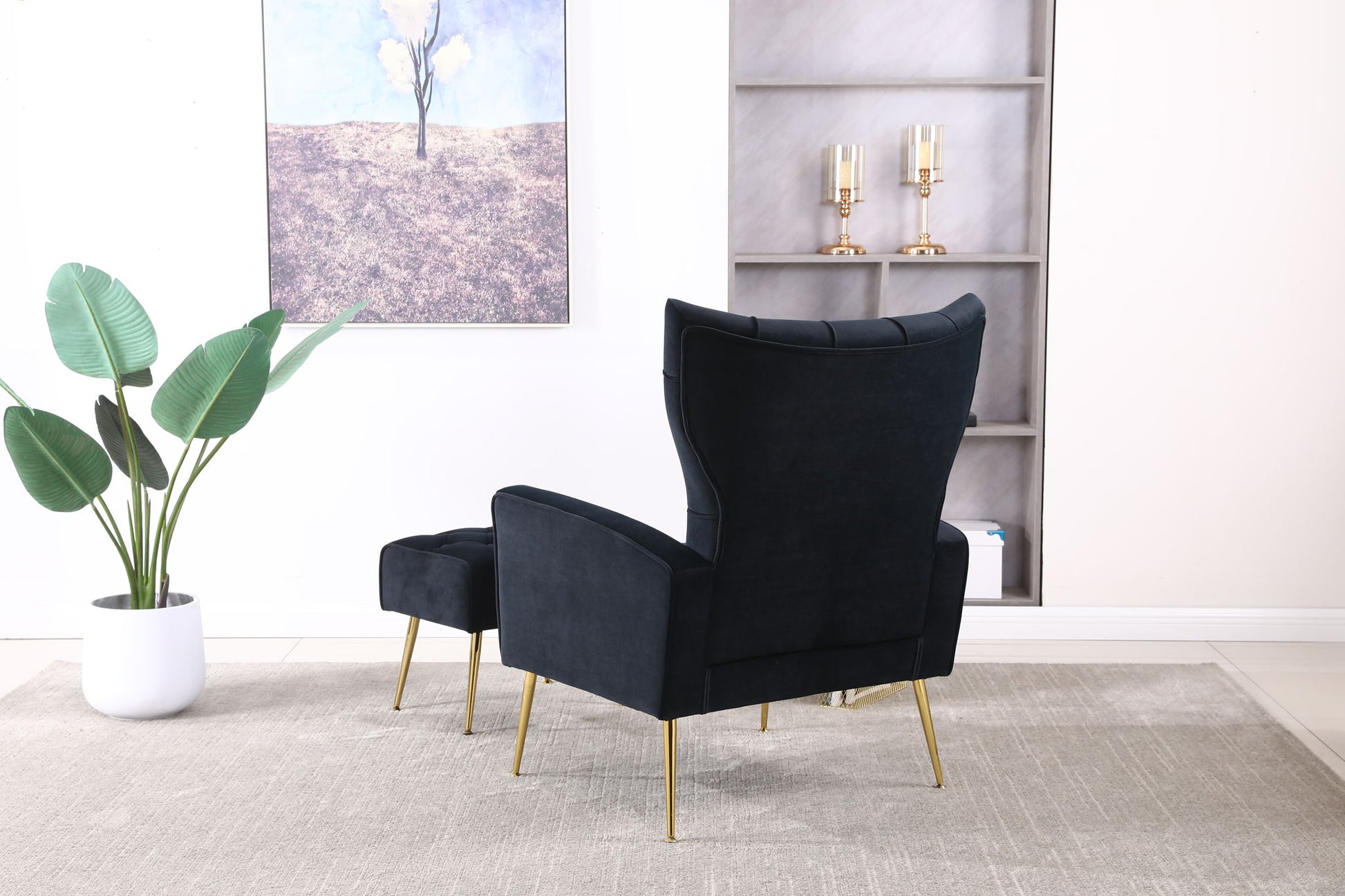 Modern Accent Chair With Ottoman, Comfy Armchair For Living Room, Bedroom, Apartment, Office - Black