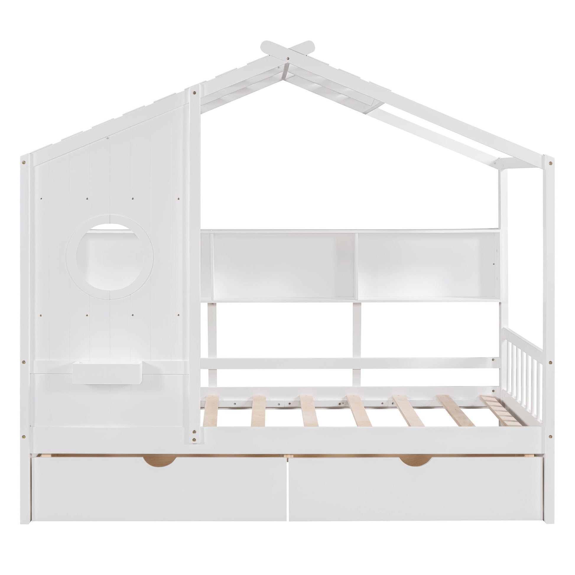 Twin Size House Bed With 2 Drawers, Kids Bed With Storage Shelf - White