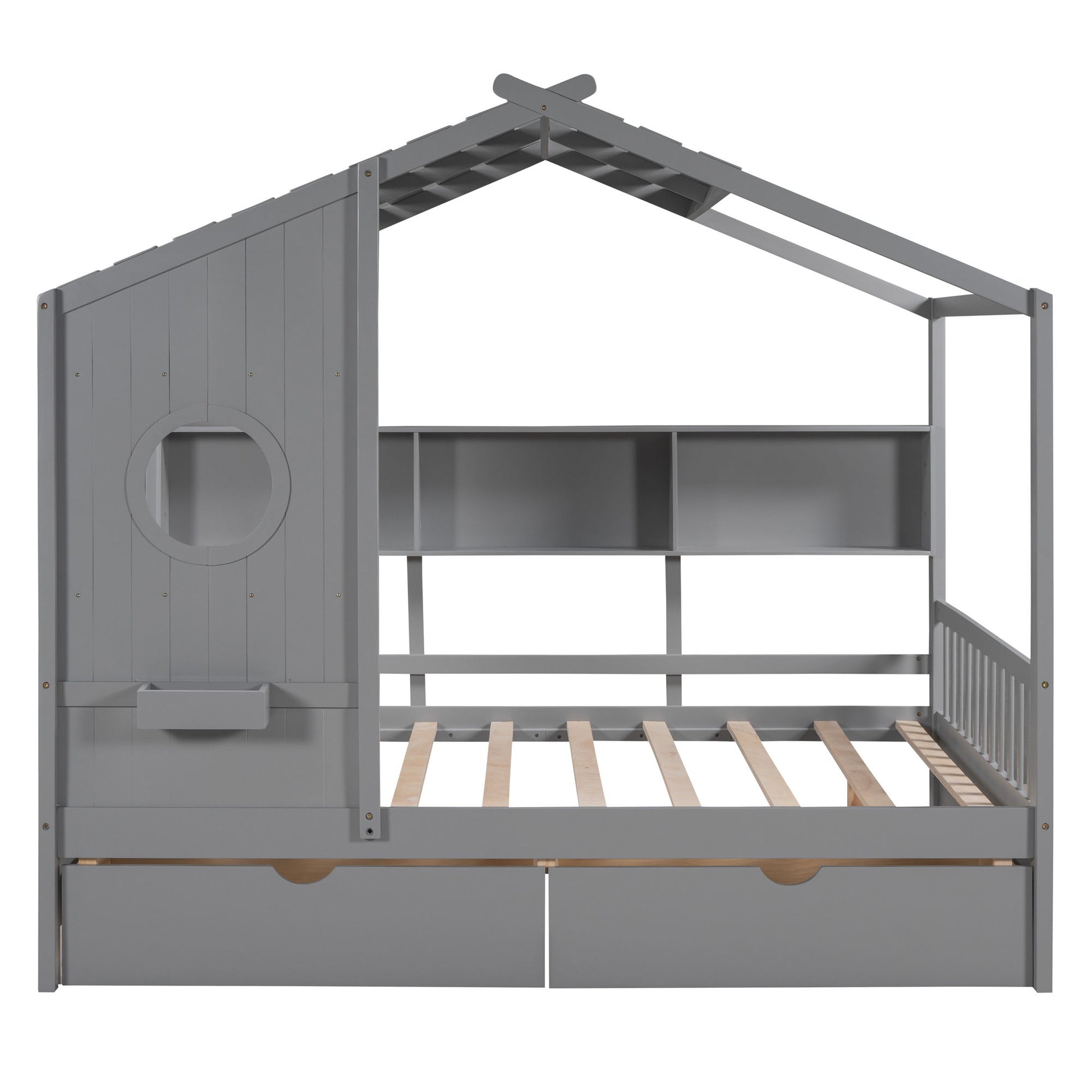 Full Size House Bed With 2 Drawers, Kids Bed With Storage Shelf - Gray