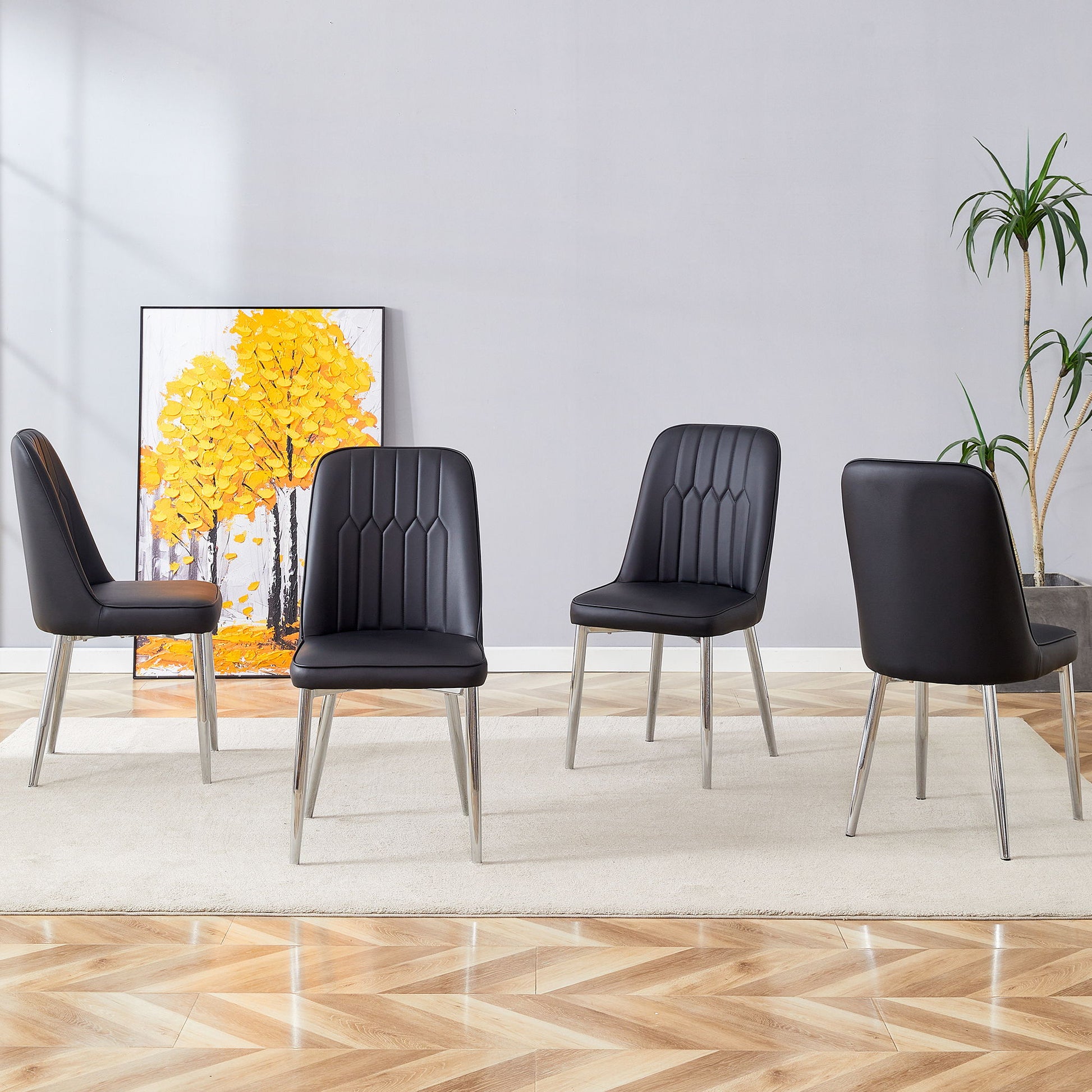 Modern Dining Chairs (Set of 4) With Backrest And Silver Metal Legs For Home And Office - Black