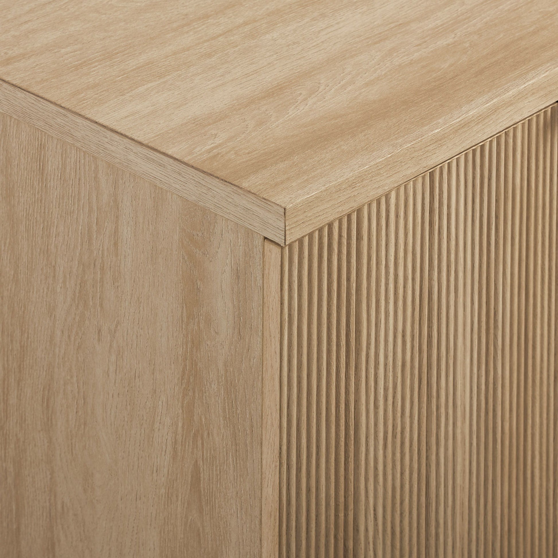 Modern Fluted Door Minimalist Storage Sideboard - Coastal Oak / Black