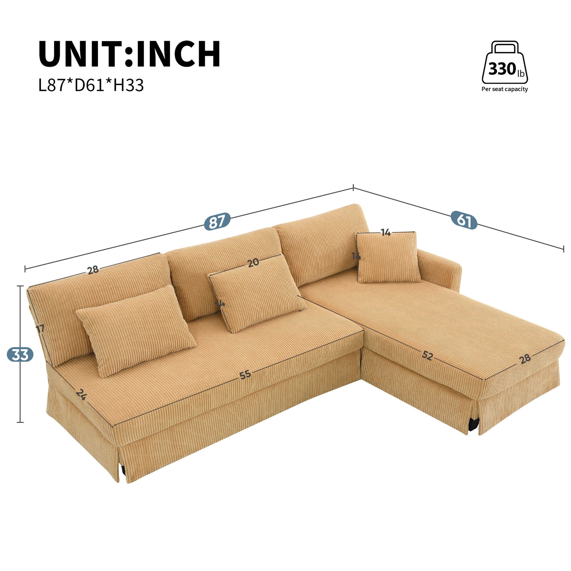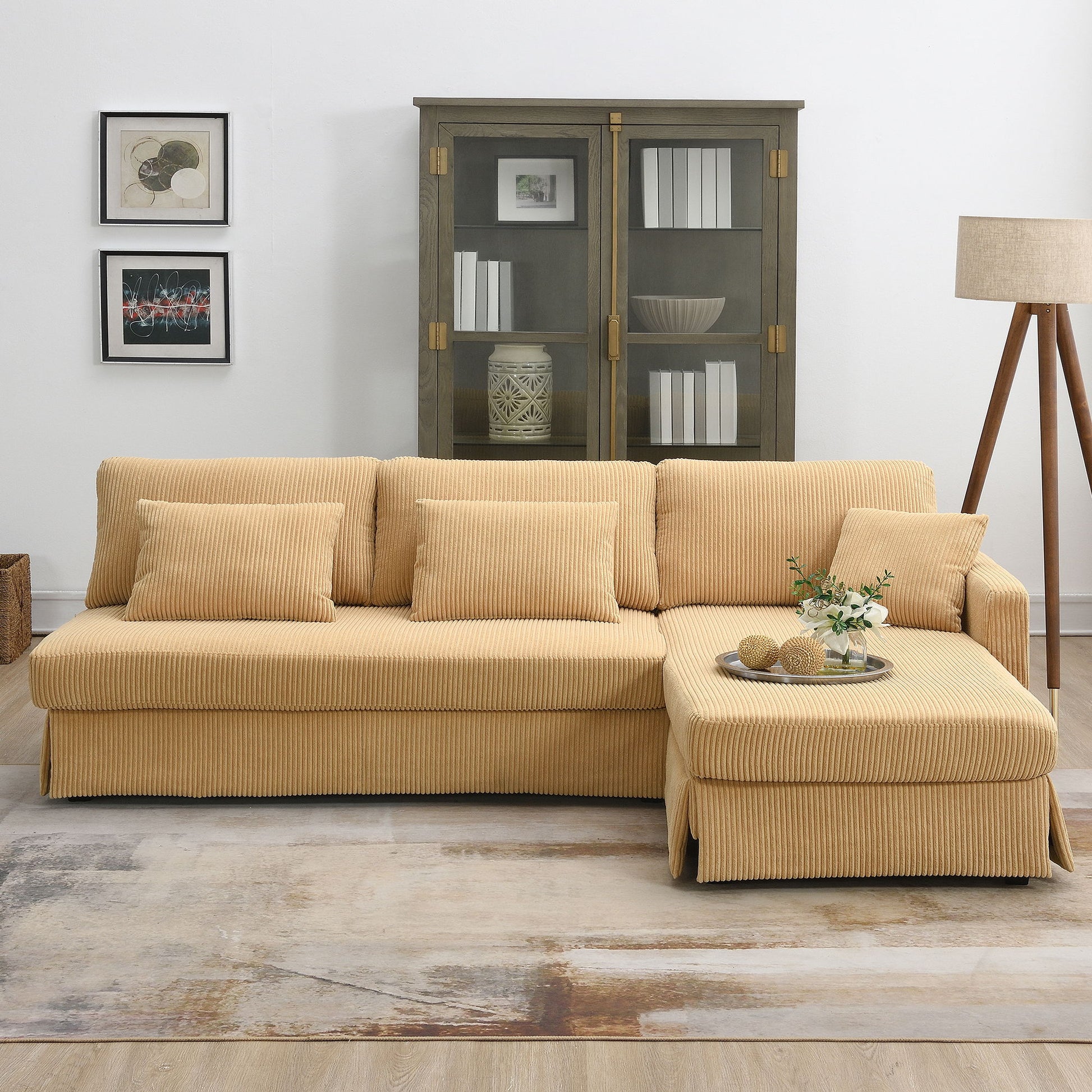 Modern L-Shaped Corduroy Sofa With Reversible Chaise, 4 Seat Upholstered Sectional Indoor Furniture, Convertible Sleeper Couch With Pillows - Light Brown