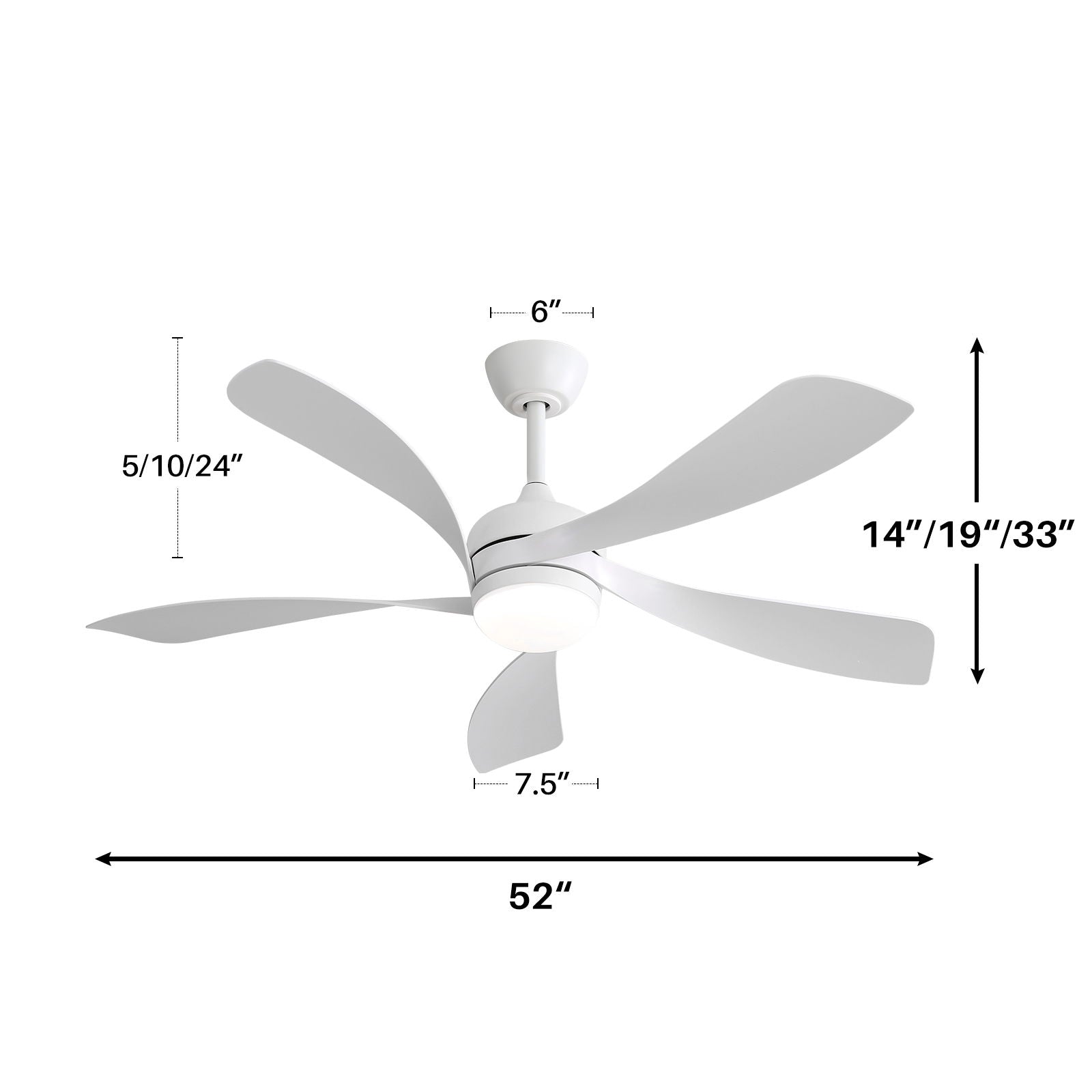 Modern Led Ceiling Fan With 3 Color Dimmable 5 ABS Blades Remote Control Reversible Dc Motor For Bedroom - White