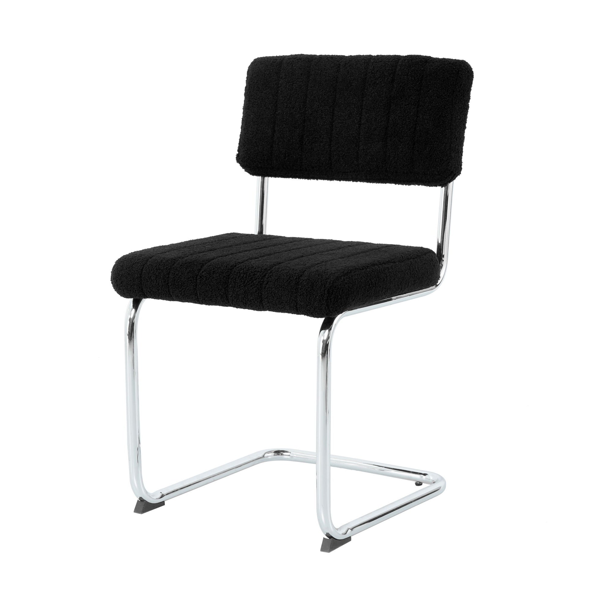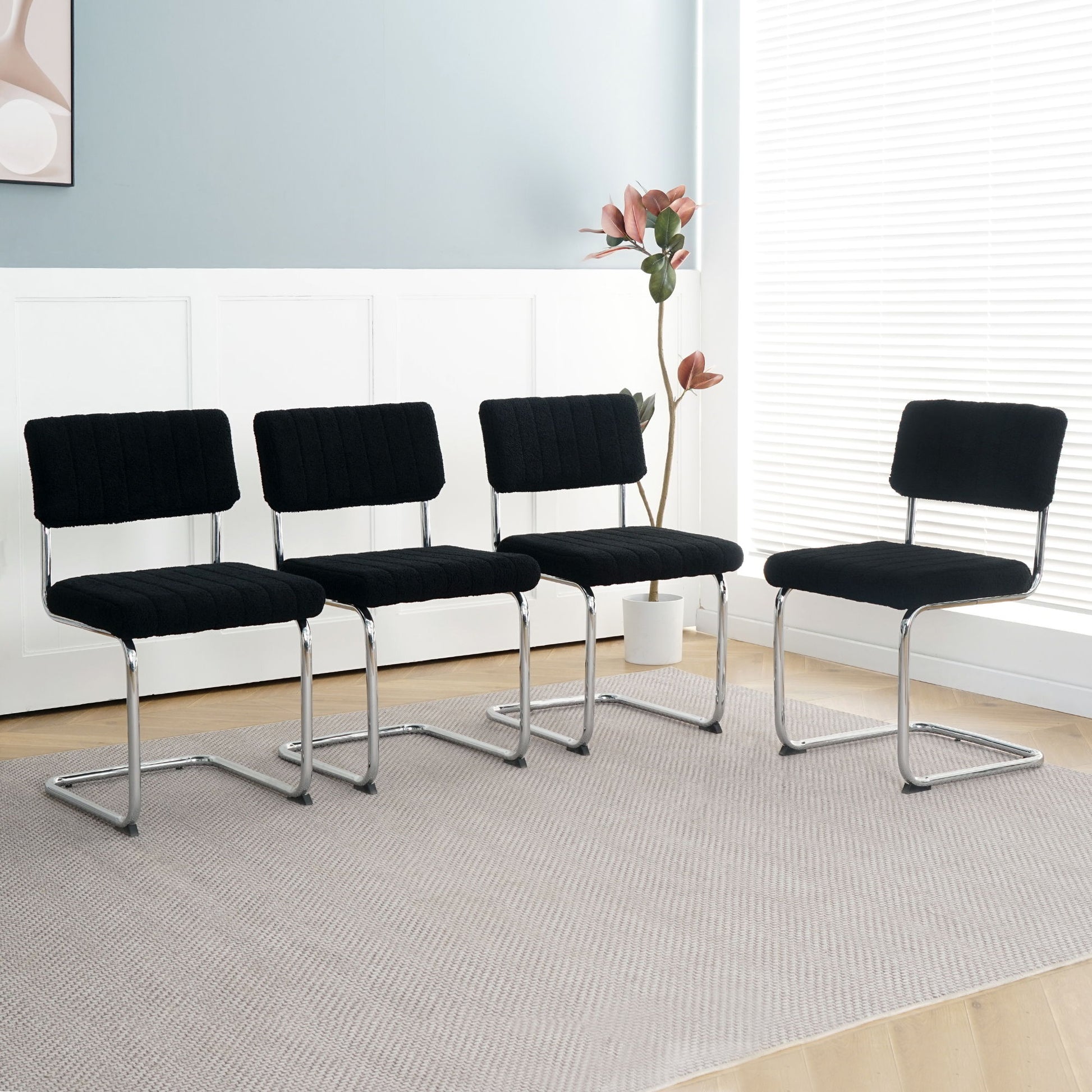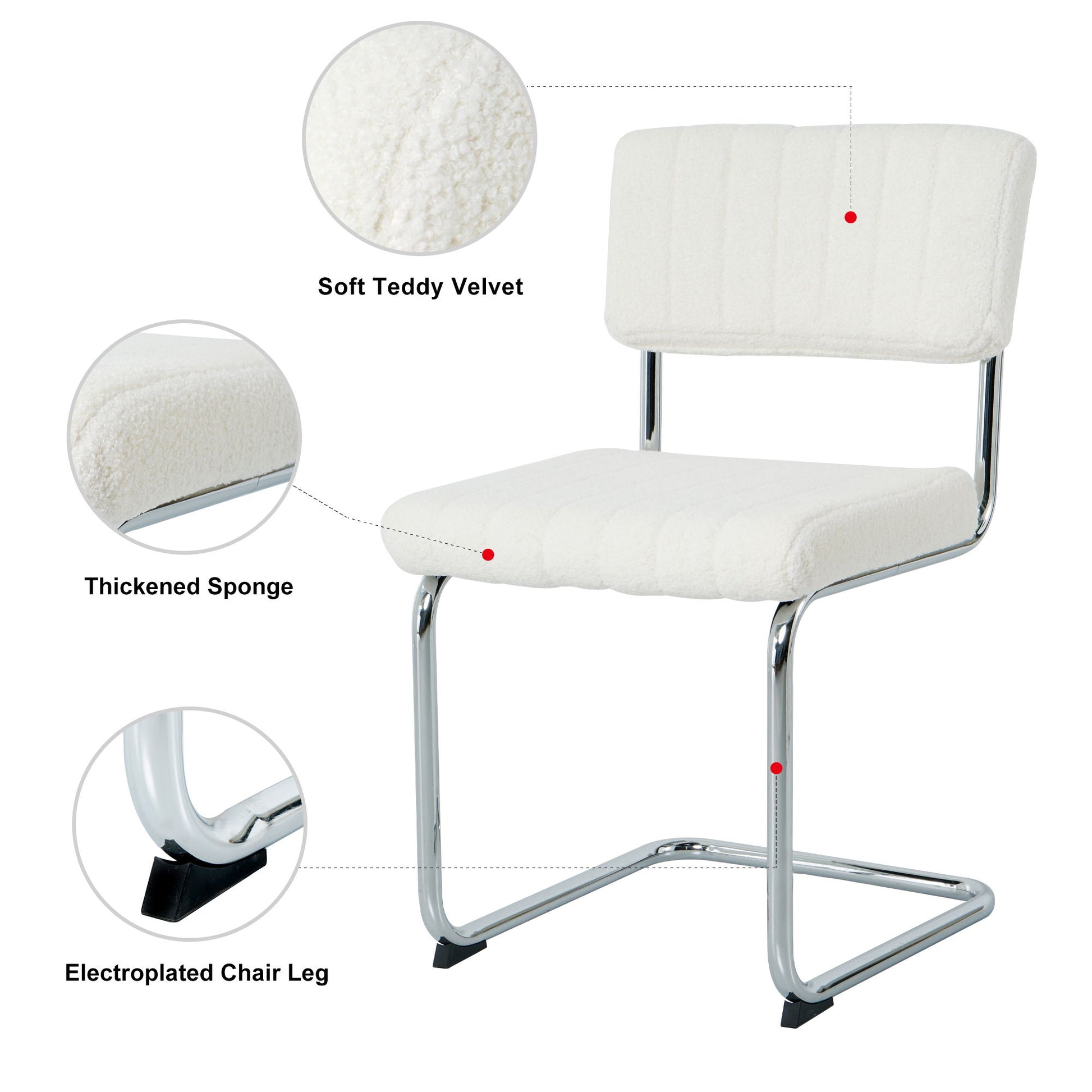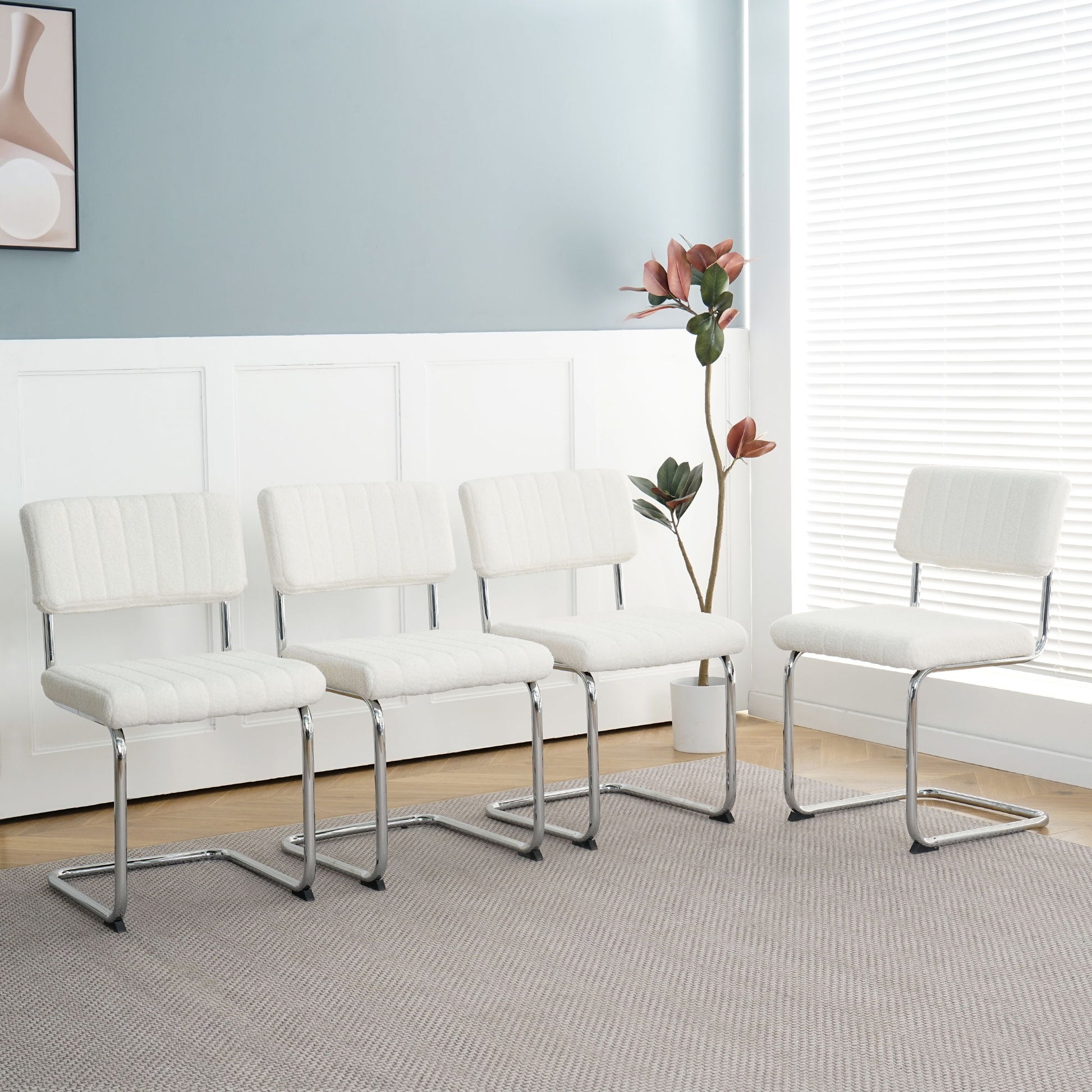 Modern Simple Light Luxury Dining Chair Set With Metal Legs, Teddy Fabric, Bow Design (Set of 4) - White