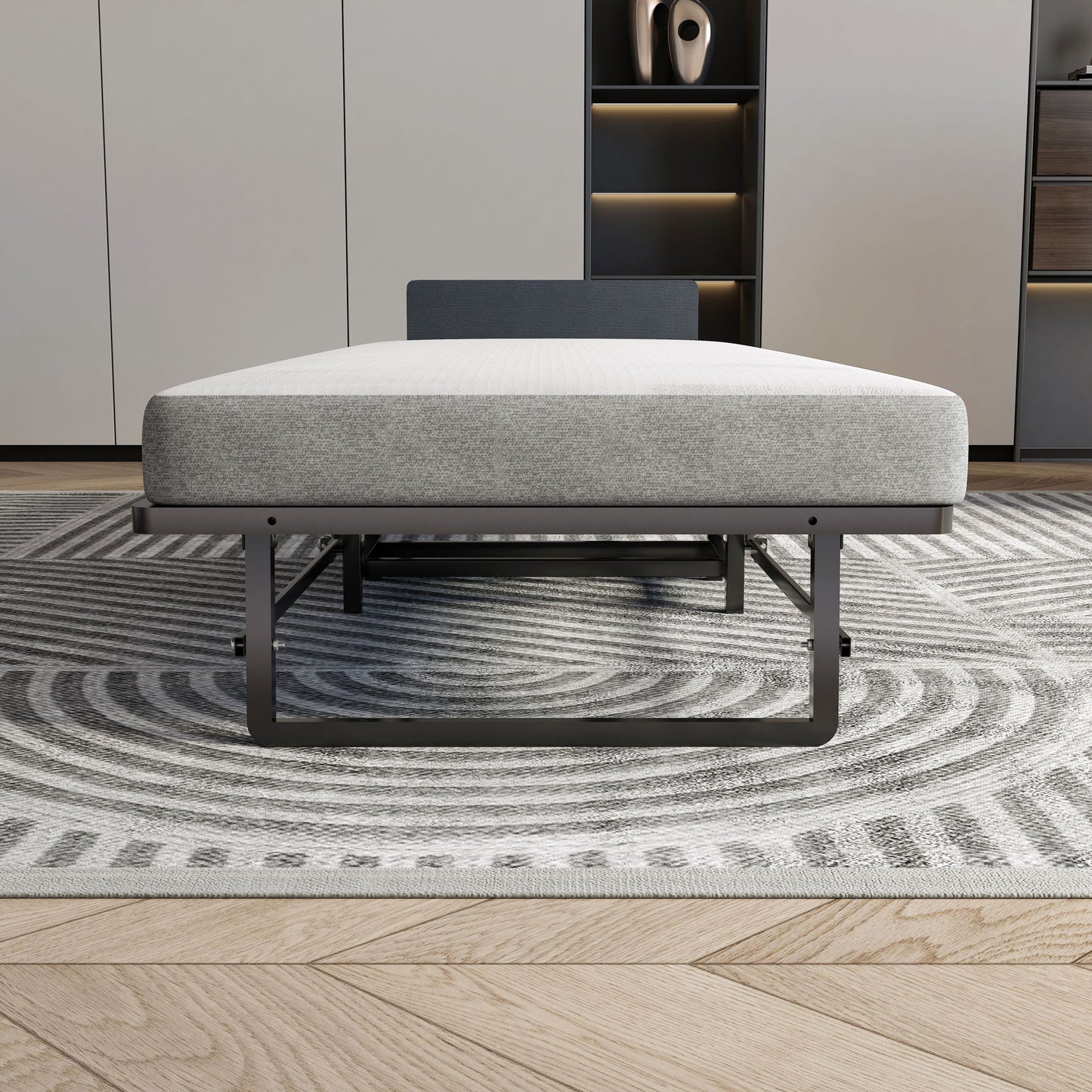 Modern Metal Folding Bed Frame With Foam Mattress, Easy Storage & Mobility - Black