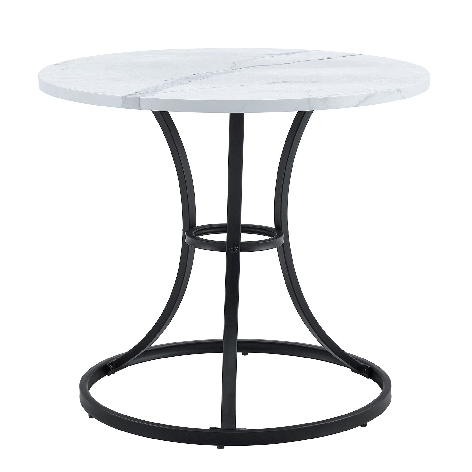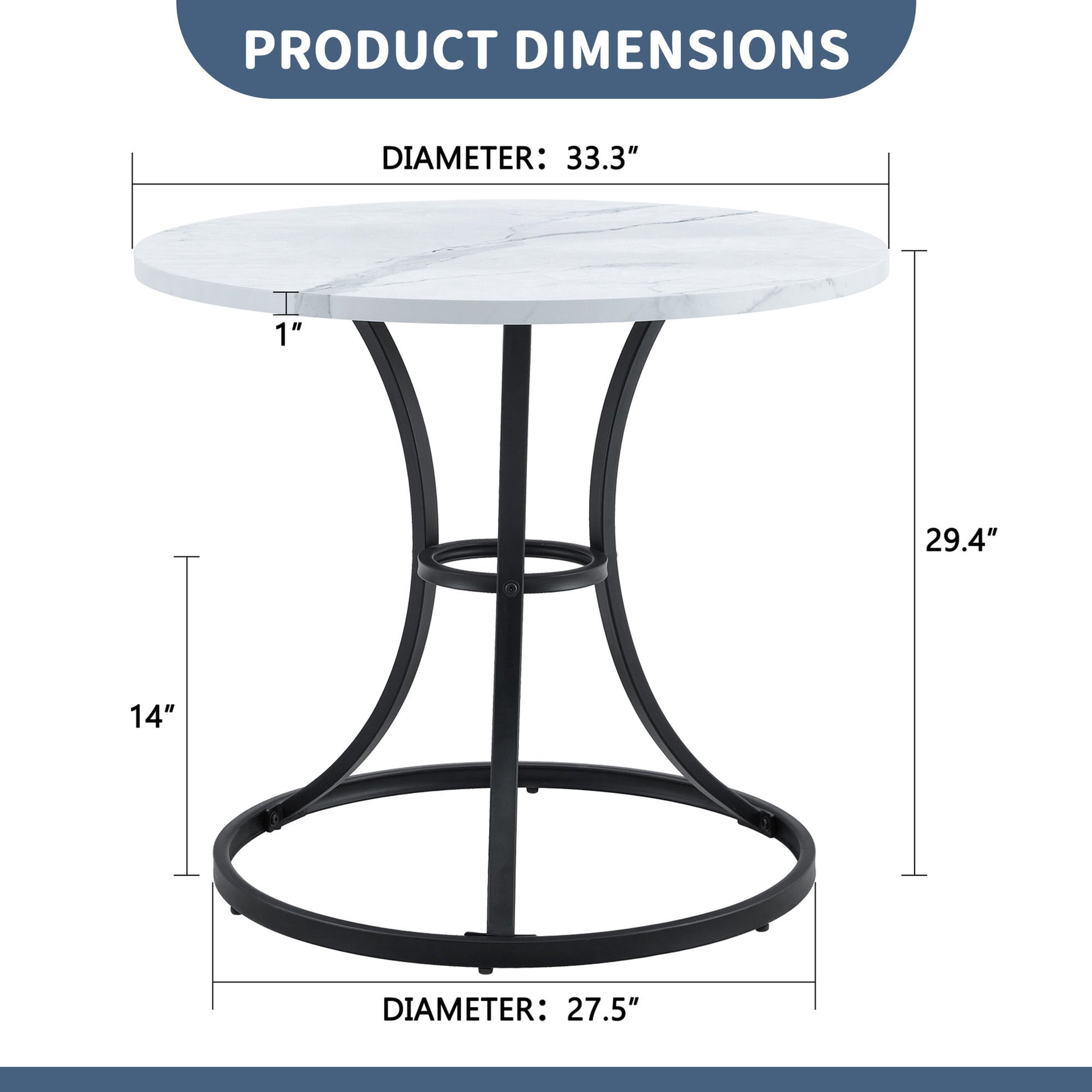 Modern Minimalist Circular Dining Table With Marble Texture And Metal Legs - White / Black