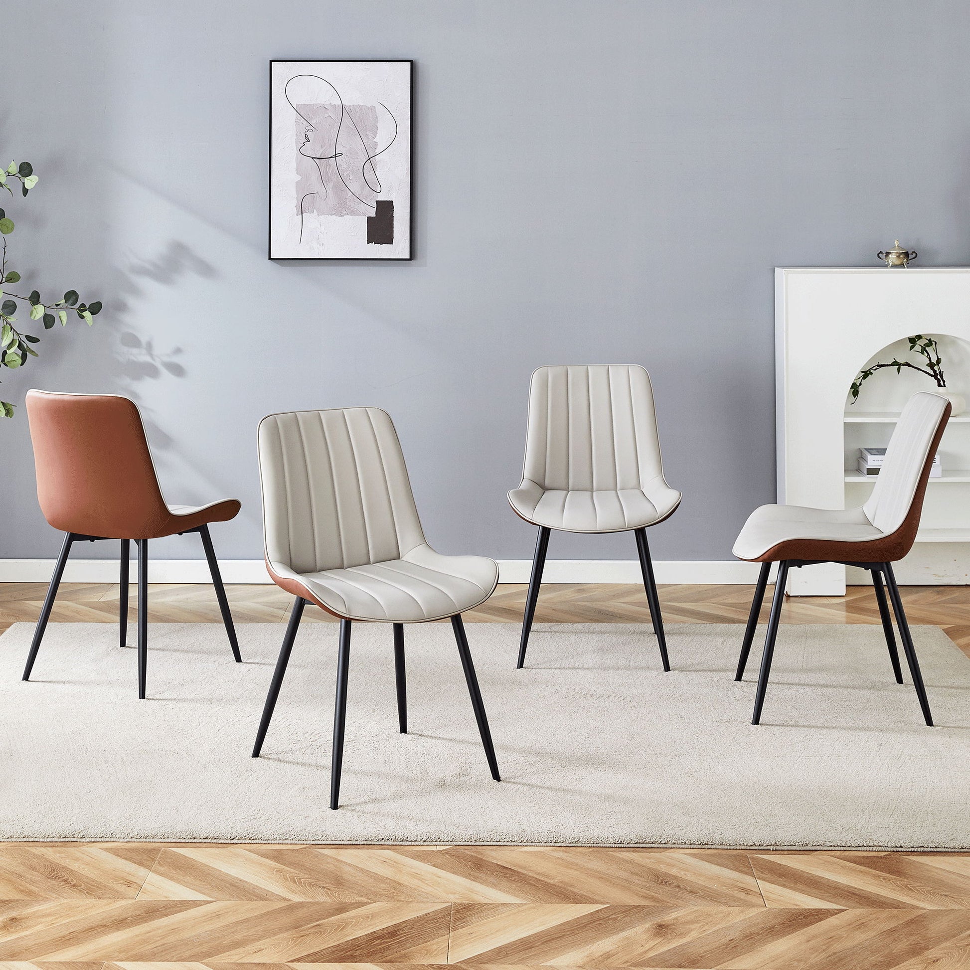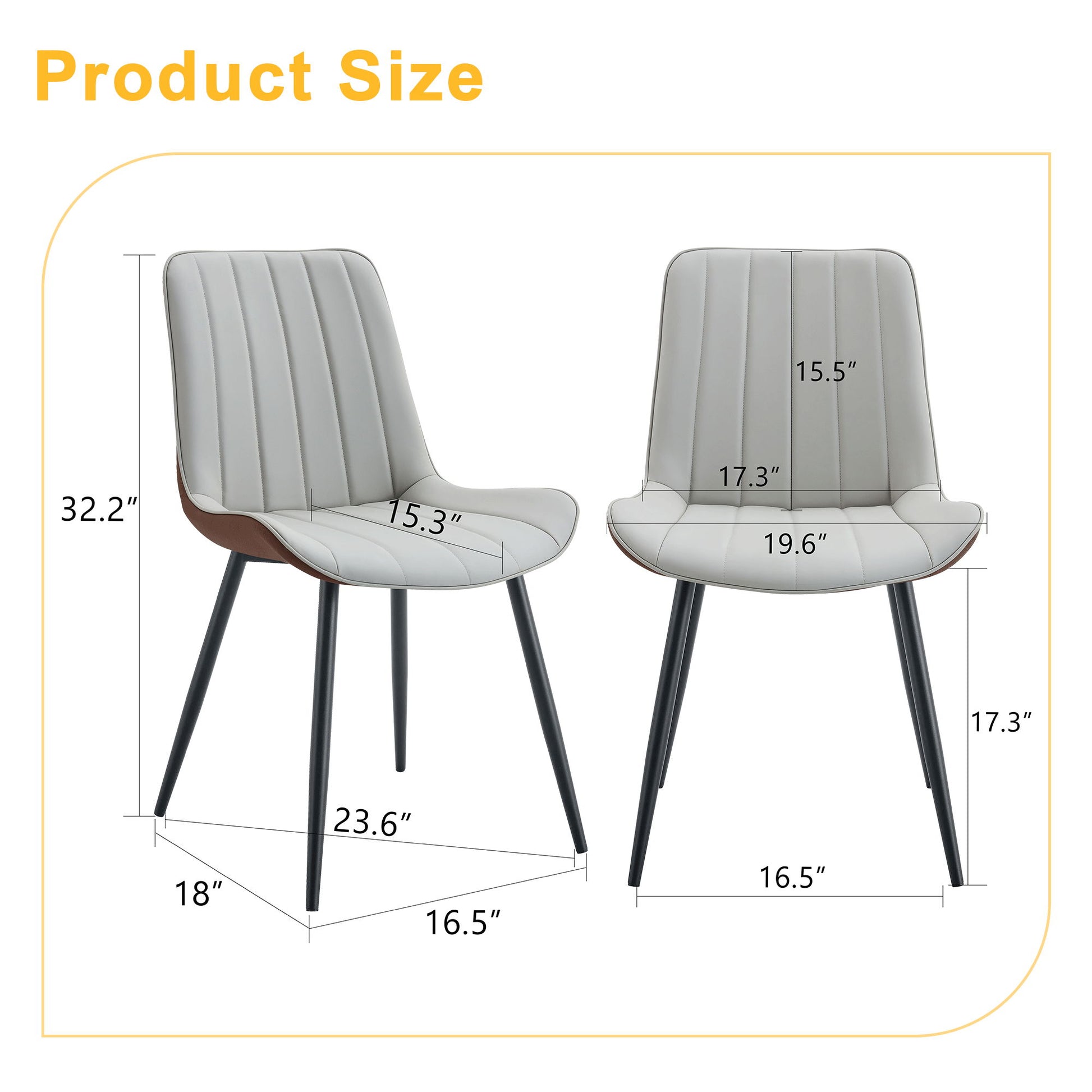 Modern Minimalist Dining Chair Set Extended Seat Cushion, Leather, Metal Legs, 4 Pieces - White / Dark Gray