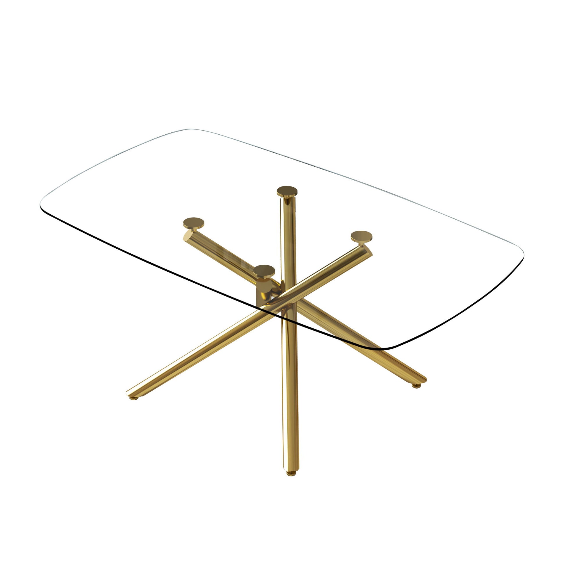 Modern Minimalist Glass Dining Table With 0.39" Tempered Glass Top & en Metal Legs For 6 - 8 People - Golden