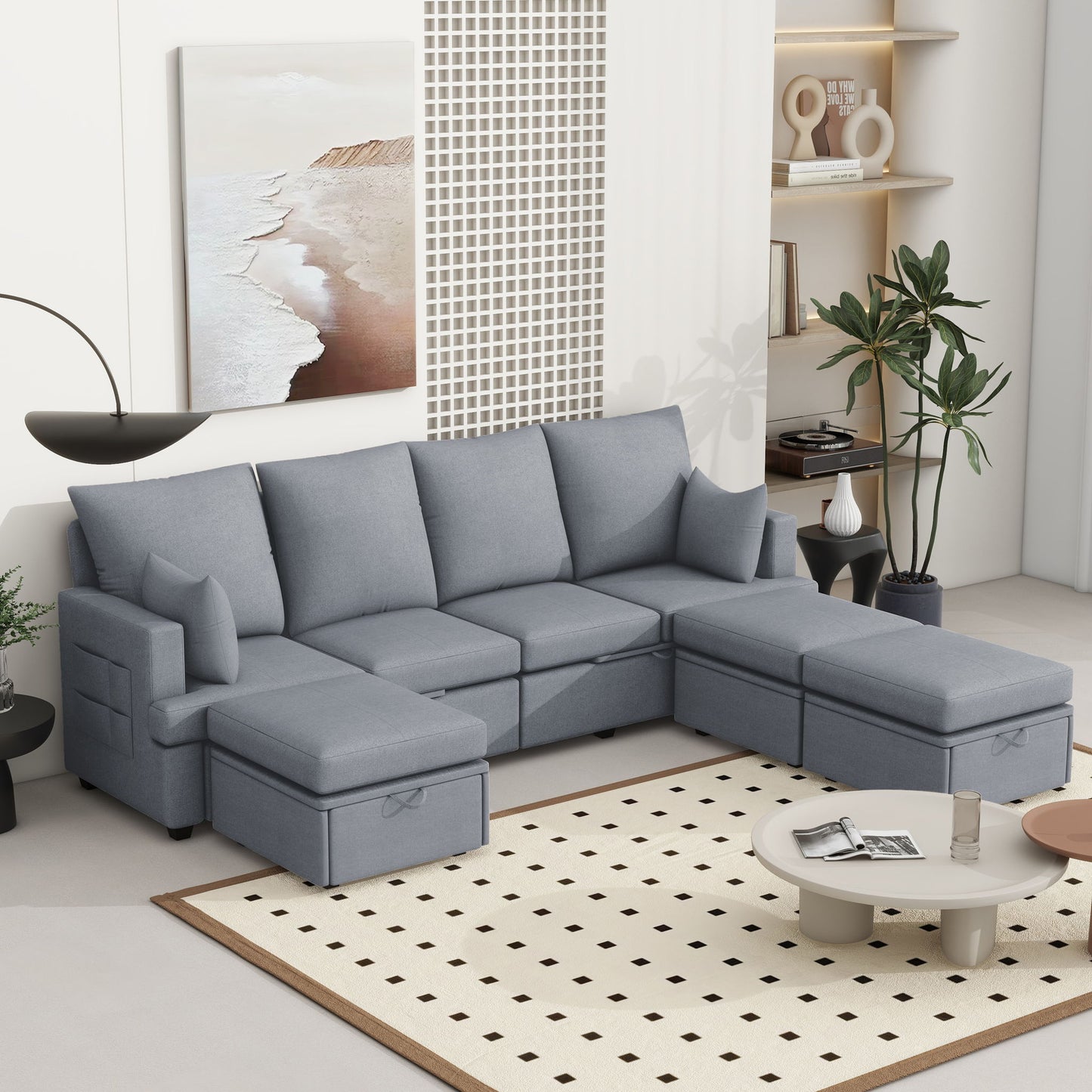 Modern U Shape Modular Sofa, 7 Seat Chenile Sectional Couch Set With 2 Pilows Included, Freely Combinable Indoor Funiture For Living Room, Apartment, Office - Light Gray
