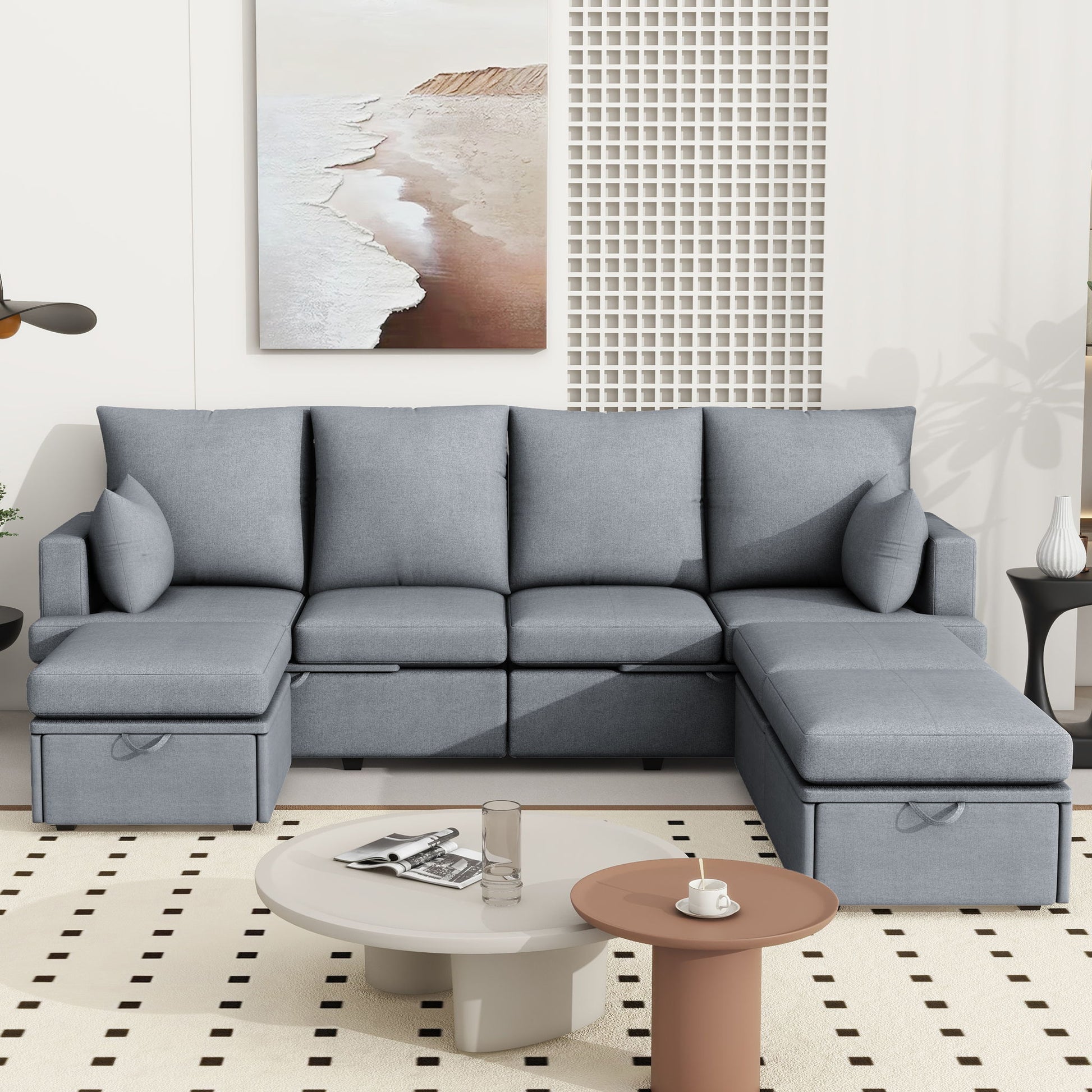 Modern Modular Sofa, 6 Seat Chenile Sectional Couch Set With 2 Pilows Included, Freely Combinable
