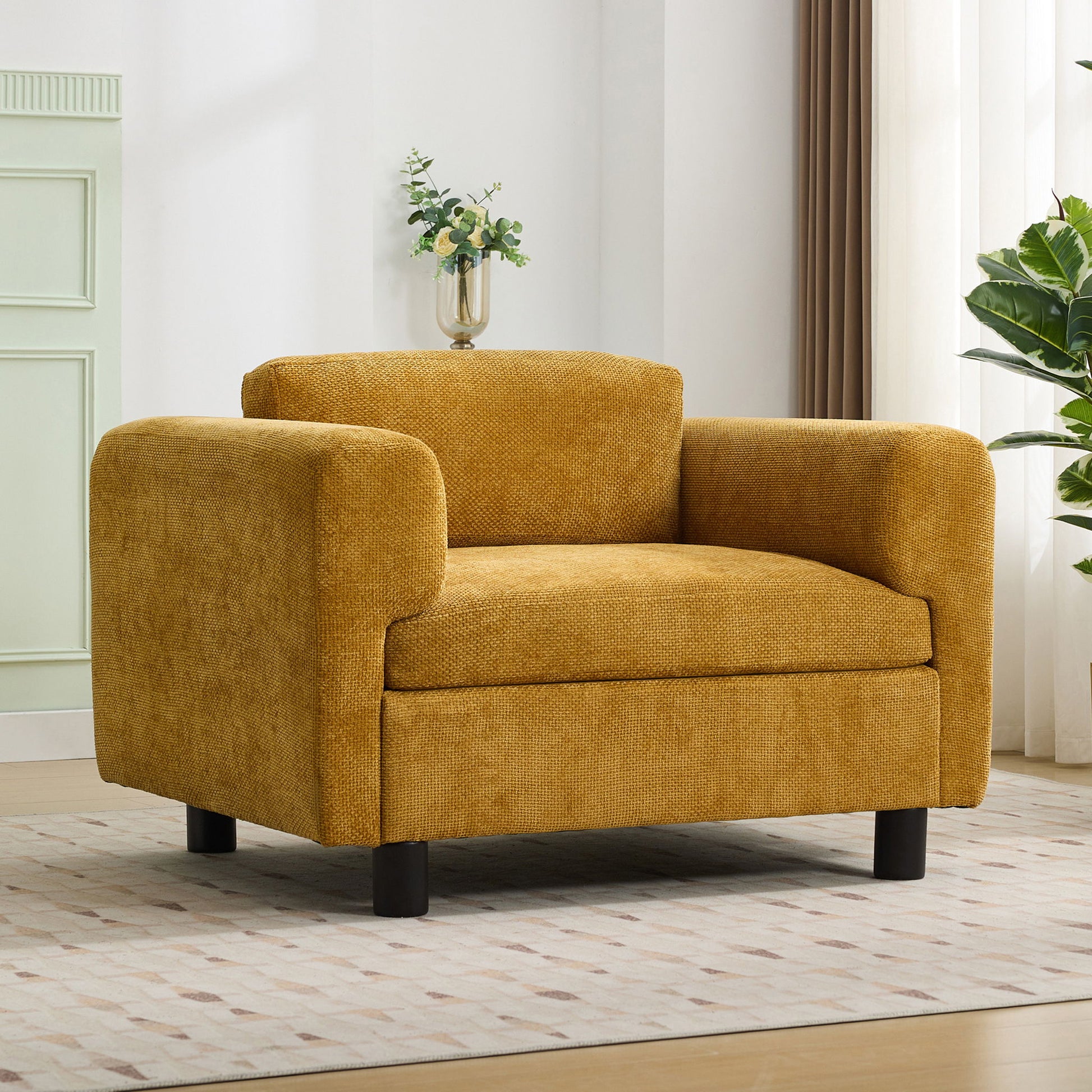 Modern Oversized Armchair Comfy Accent Chair Single Sofa For Living Room Bedroom Office Apartment, Woven Velvet Fabric - Yellow