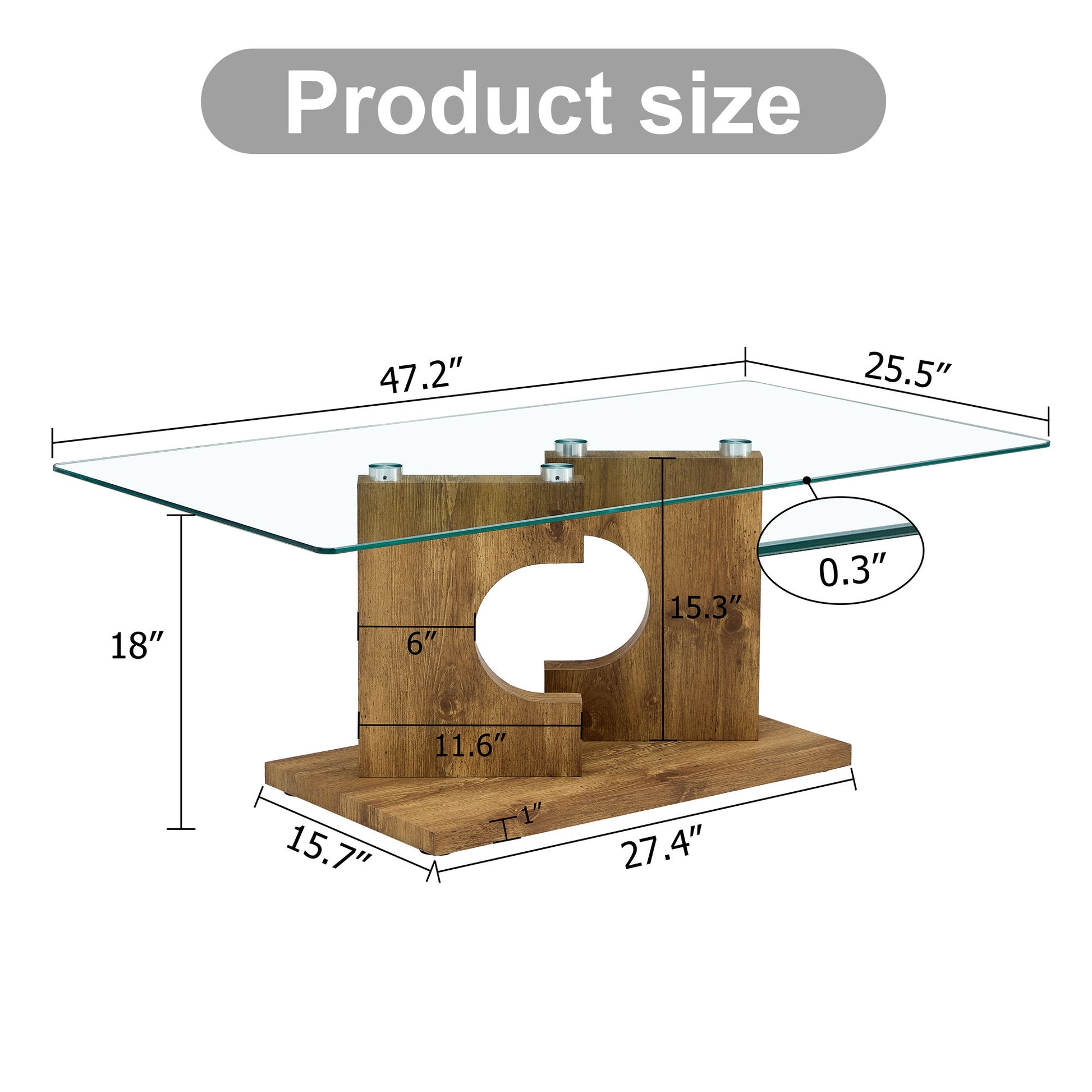 Modern Rectangular Coffee Table With Tempered Glass Top - Natural Wood