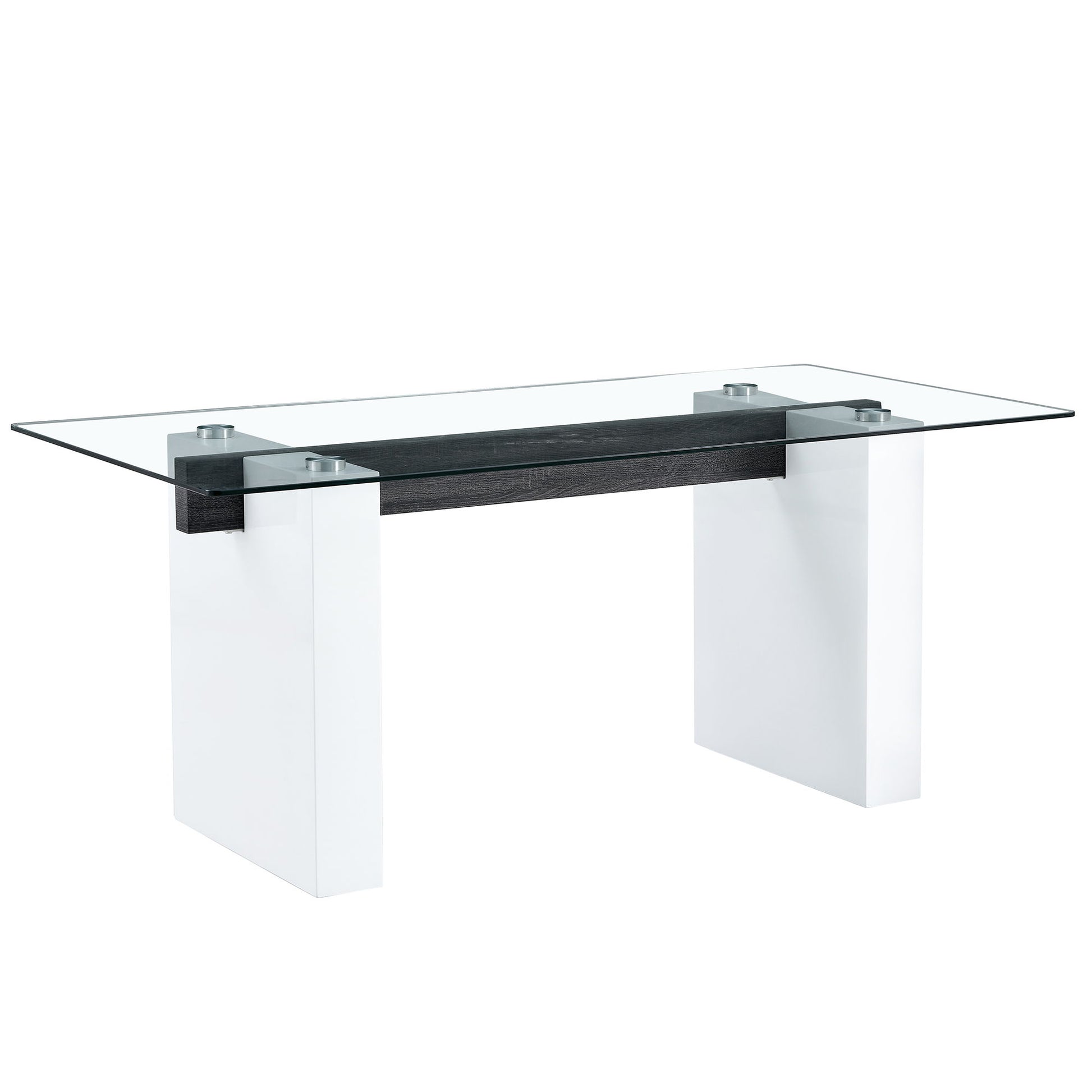 Modern Rectangular Table With Patterned Top And Large Legs For Kitchen And Dining - White