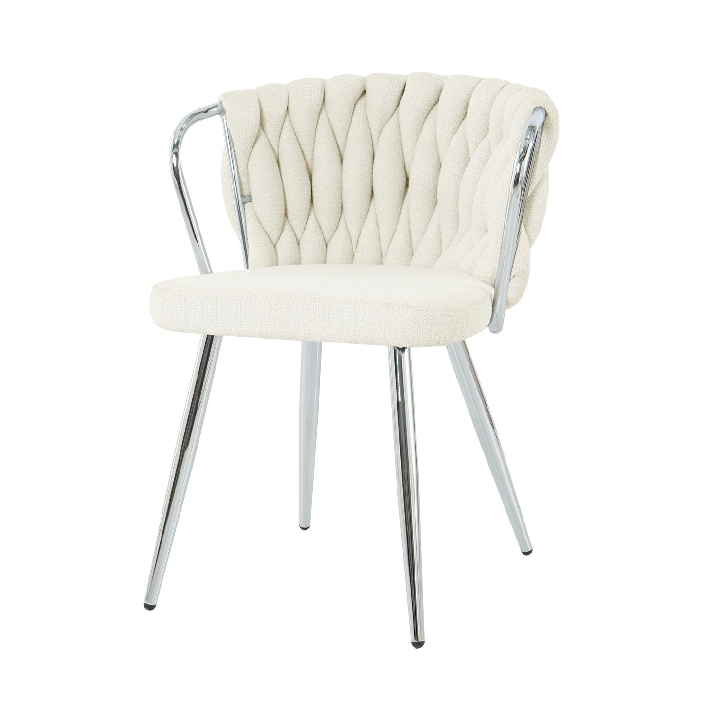 Modern Simple Linen Dining Chair (Set of 2) With Electroplated Metal Legs For Dining Room, Kitchen, Bedroom - White