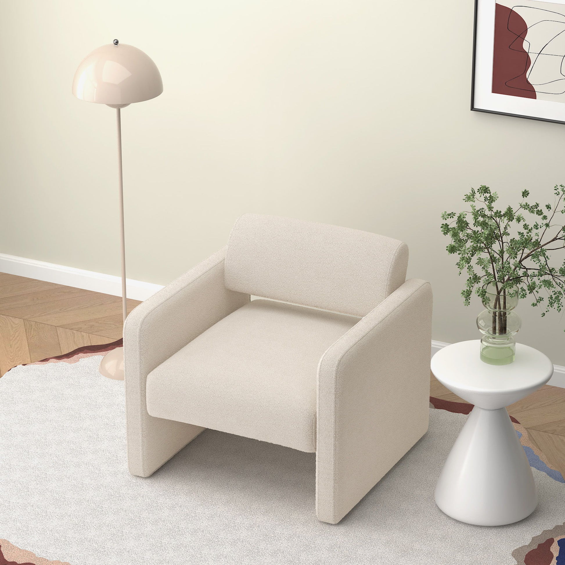 Modern Single Sofa Chair With Armrests Upholstered Velvet For Various Rooms Compact Size - Beige