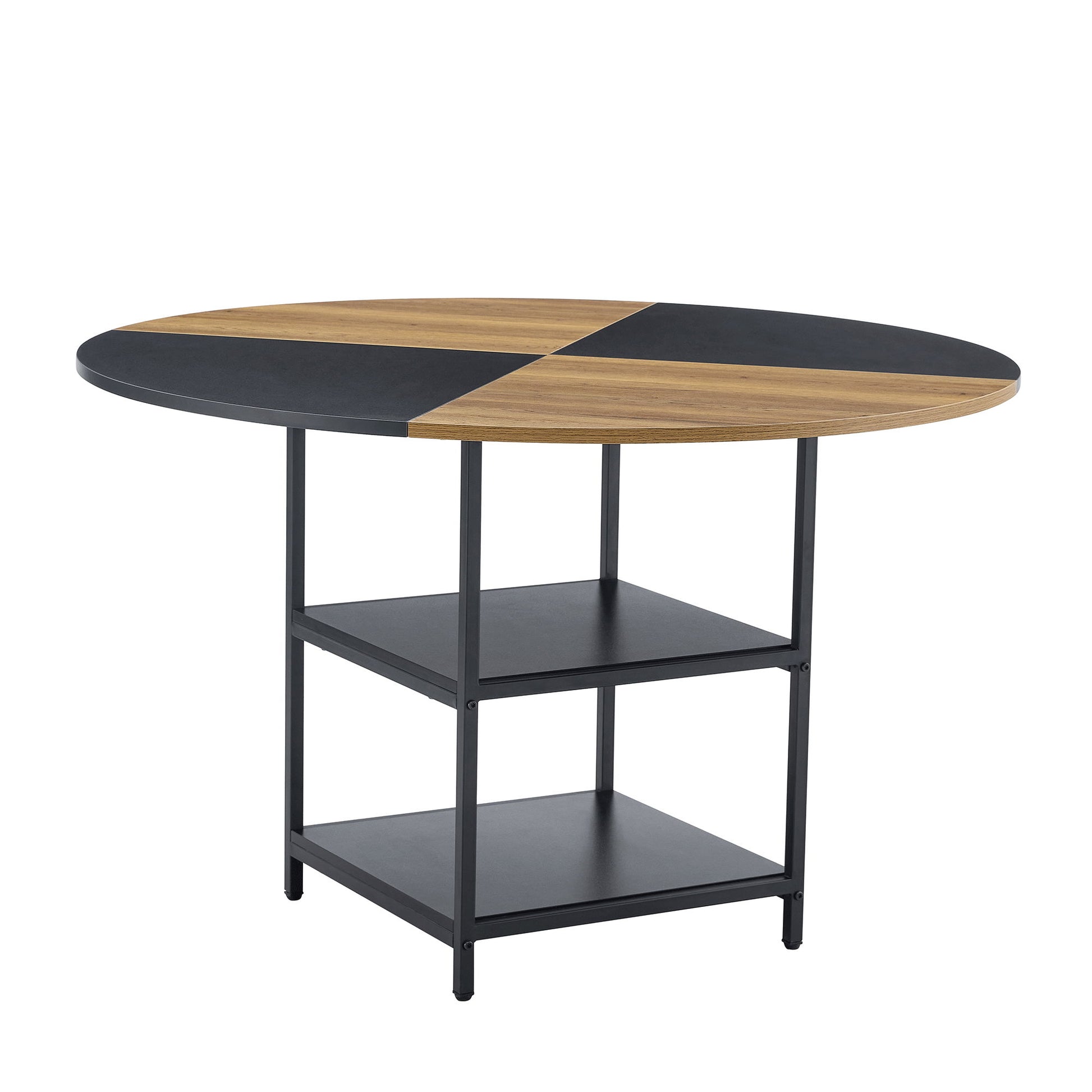 Modern Splicing Circular Dining Table With Double Layer Storage - Black / Wood